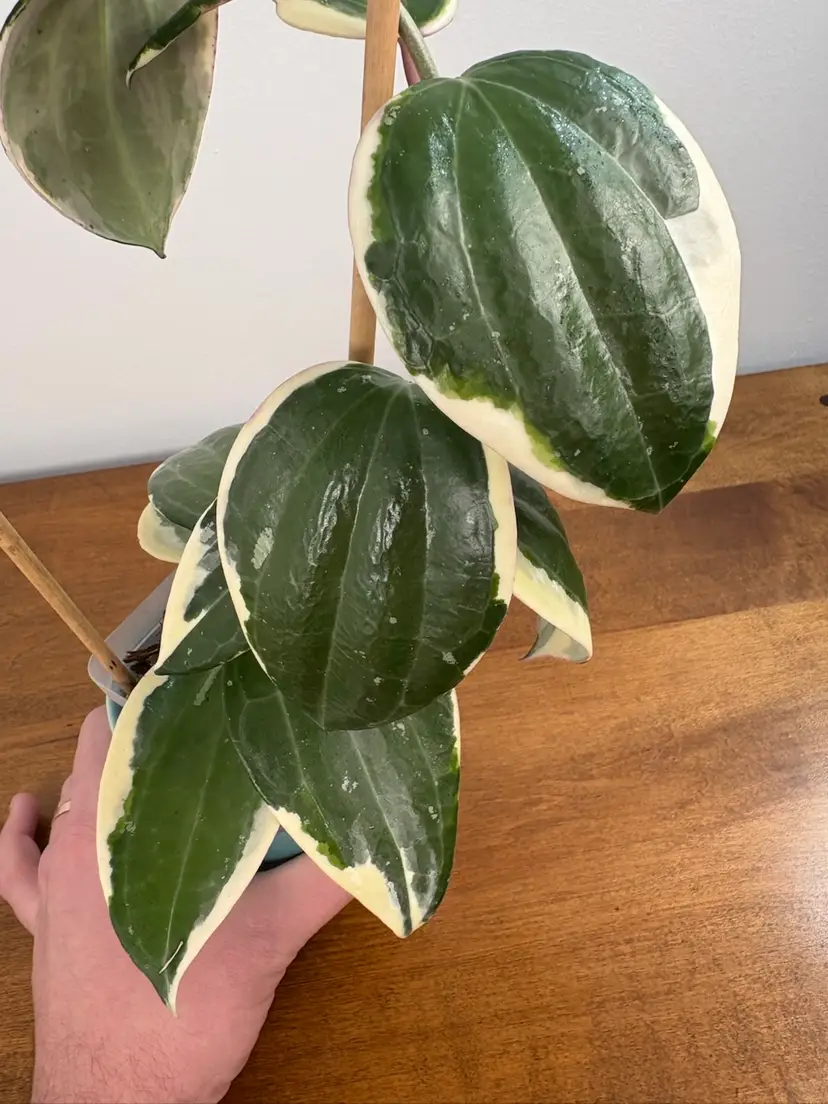 Large, multi-node with active growth points. Consistent high-color outer variegation. Emergent leaves pop with a deep magenta and settle into a creamy eggshell outer variegation. Blooming size 🧚🏻