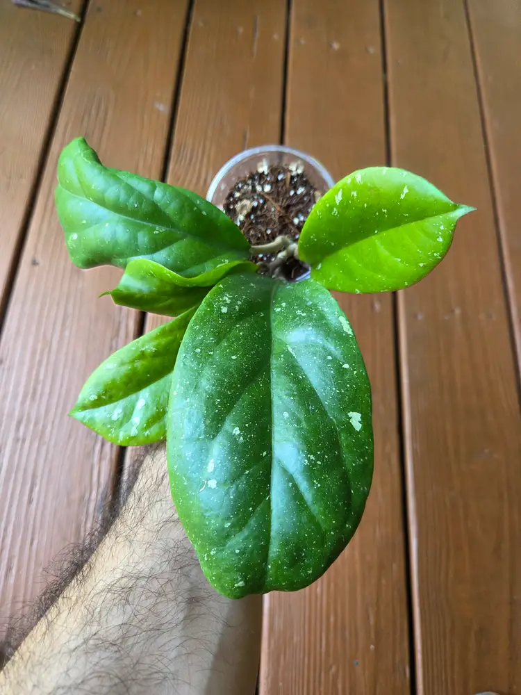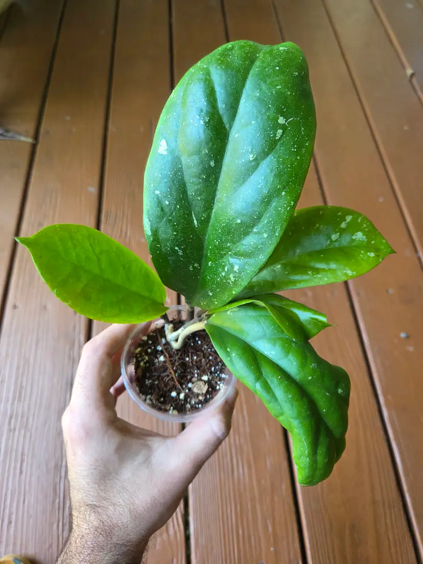 Name soon to be announced! This is the biggest one of these that I've offered. Beautiful hybrid gets giant pillowy splashy leaves! Help me flower it!😍