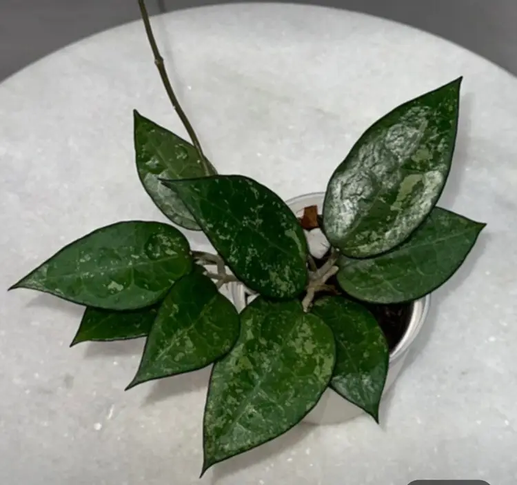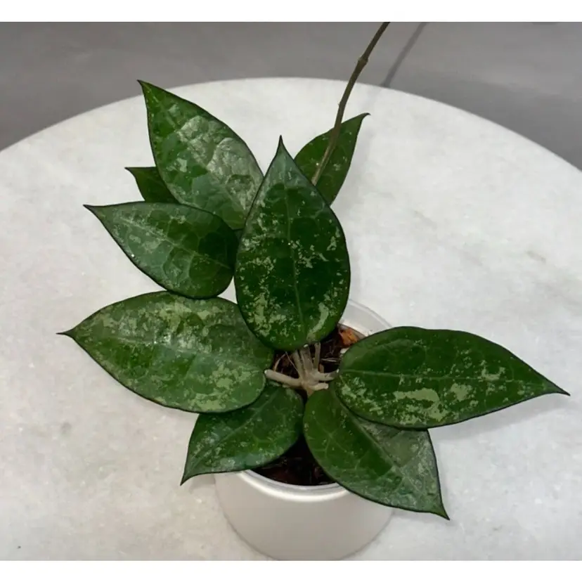 Formerly classified as Hoya parasitica 'Black Margin'. This Hoya has dark green foliage with silver flecks, outlined with a black margin/border. The leaves are textured with raised veins.