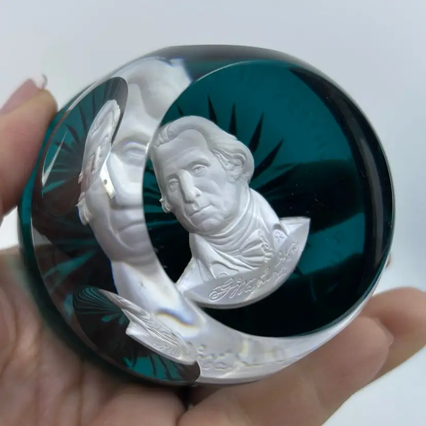 HTF 1982 DAR Daughters Of The American Revolution George Washington Peacock Blue Crystal Paperweight Limited Ed. 2.5”