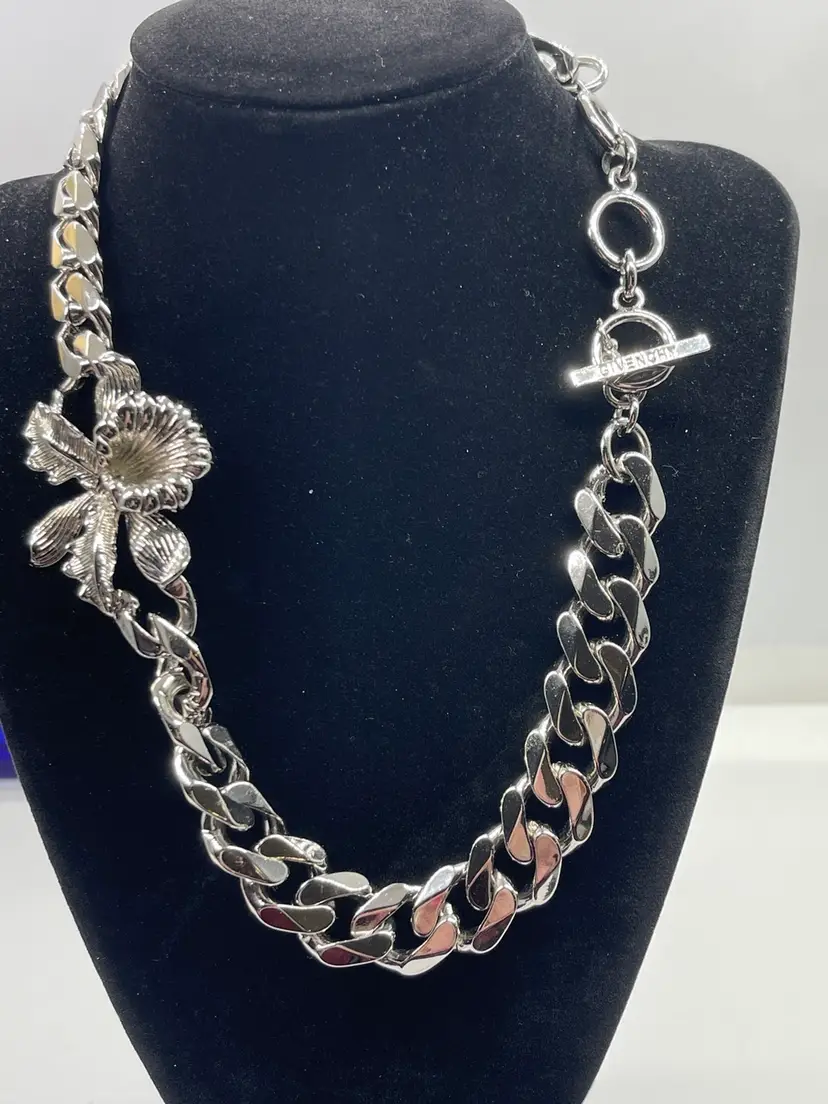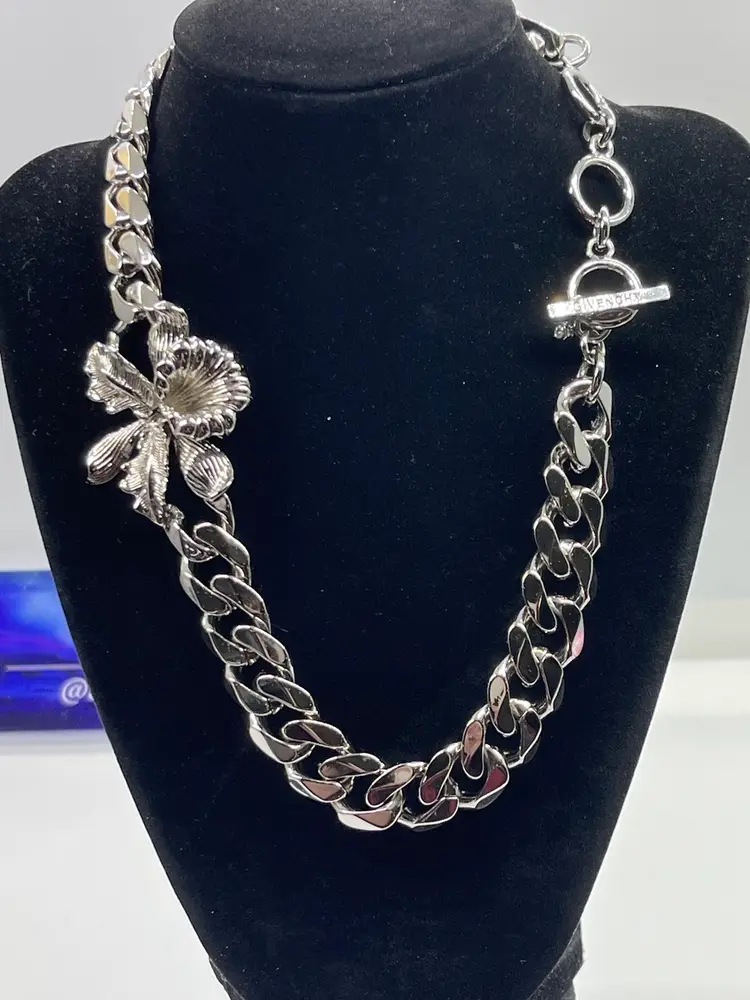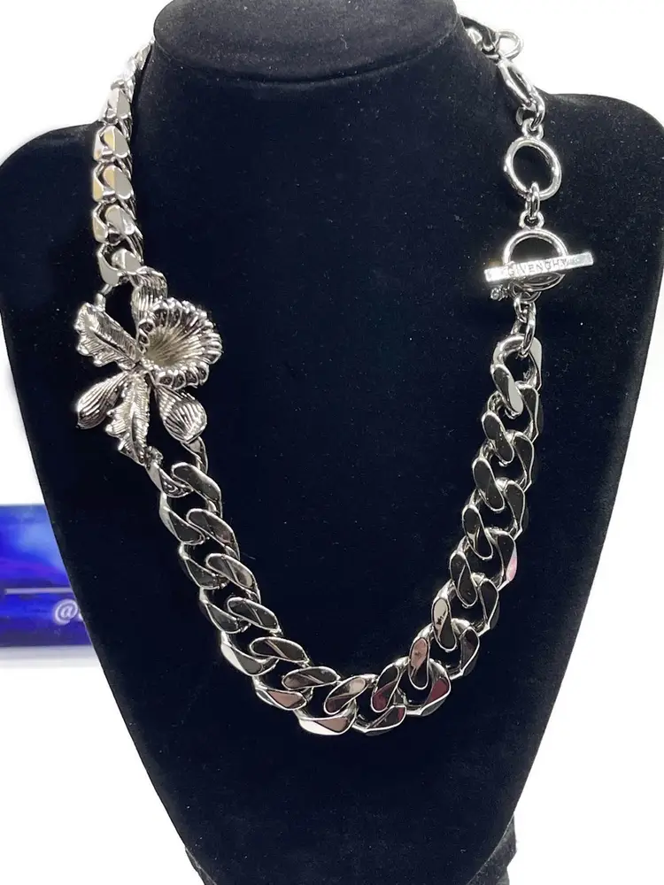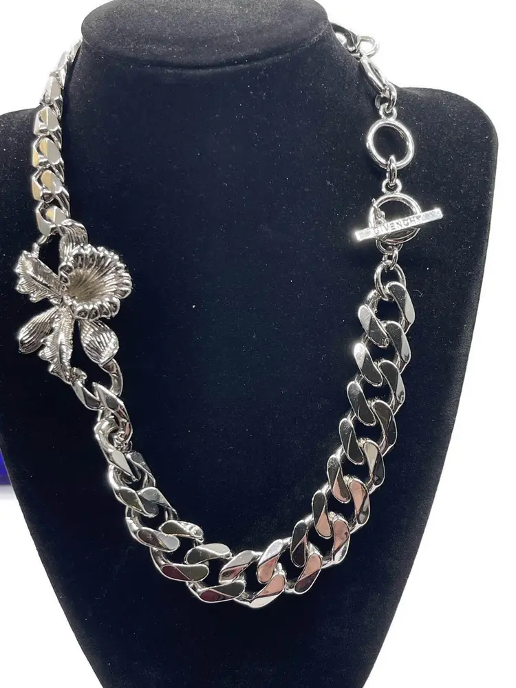 HTF Givenchy Silver Tone Chunky Chain With Orchid Flower. Like New. Excellent condition. Pre-Owned.