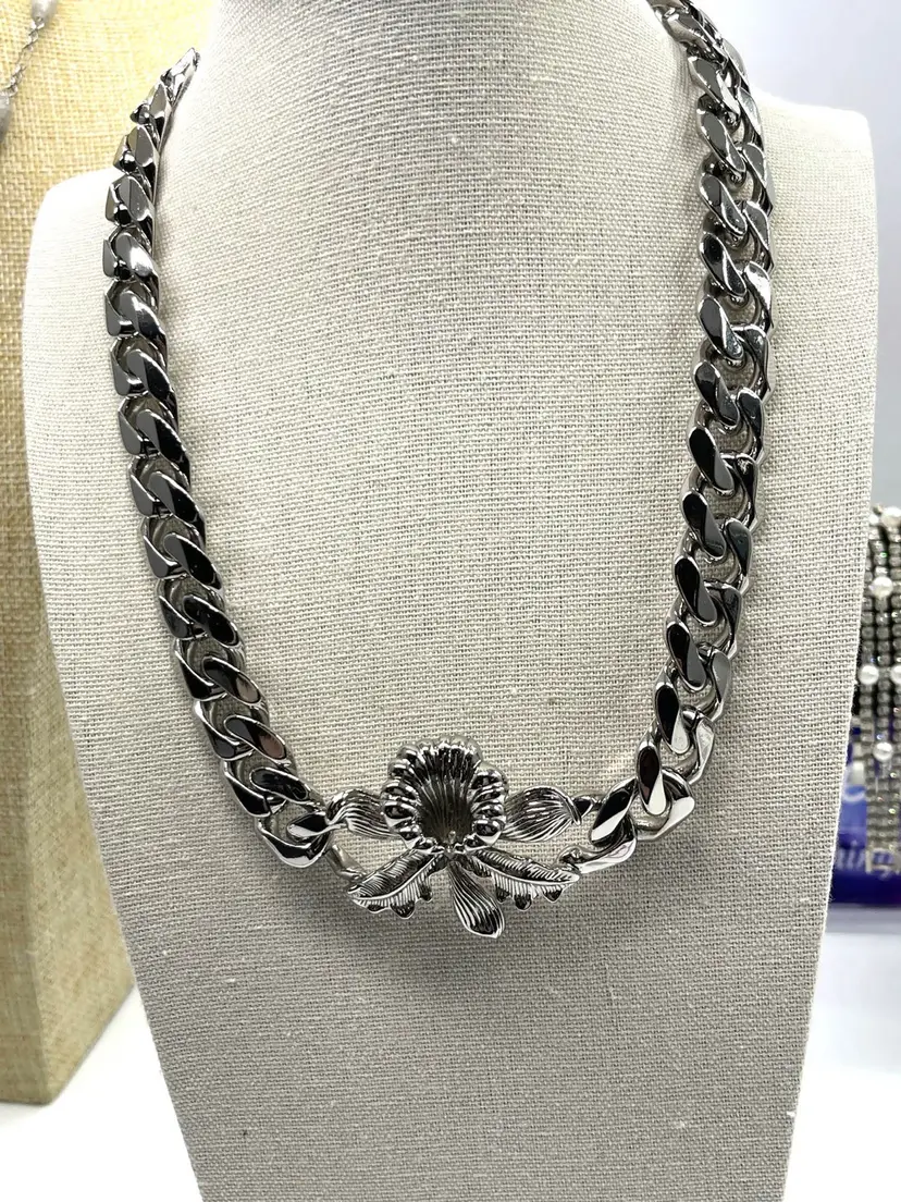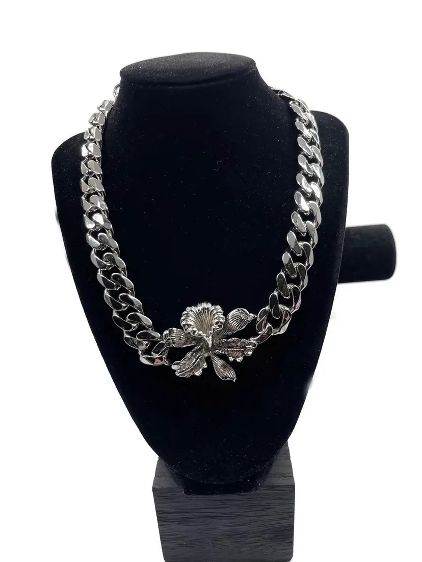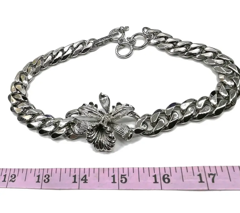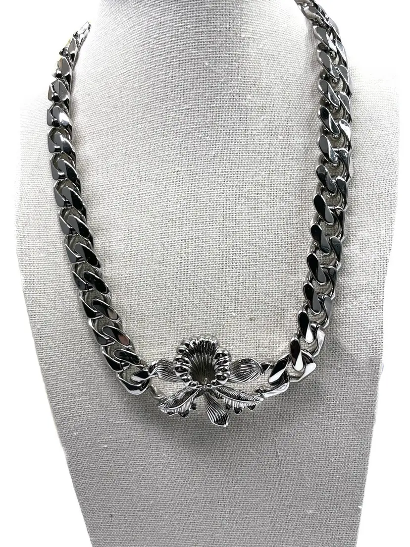 HTF Givenchy Silver Tone Chunky Chain With Orchid Flower. Like New. Excellent condition. Pre-Owned.