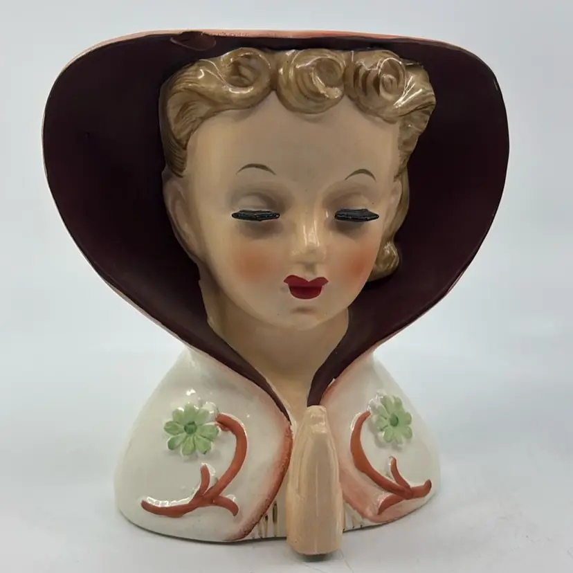 She has a chip on the top, left side of her hood as shown in pictures. Sold as is.
