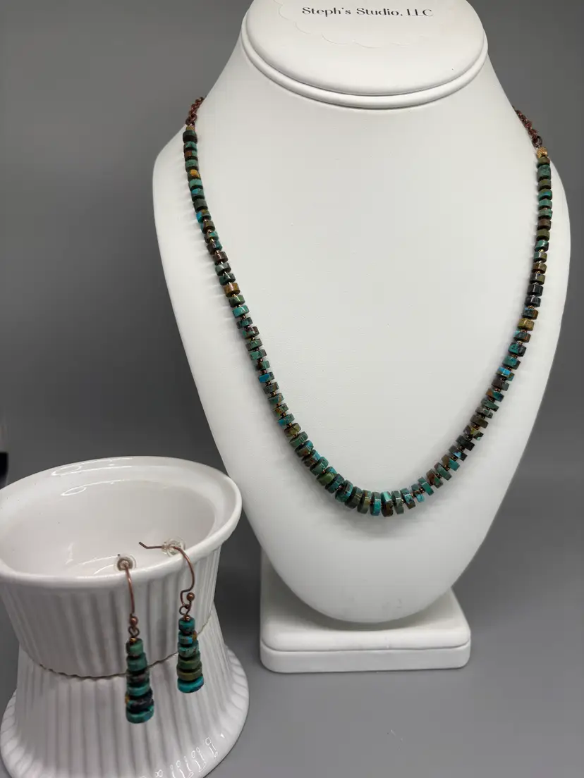 Genuine Hubei graduated necklace and earring set. Necklace has a 13 inch drop no clasp. Earrings have a 1.5 inch drop. Copper chain.