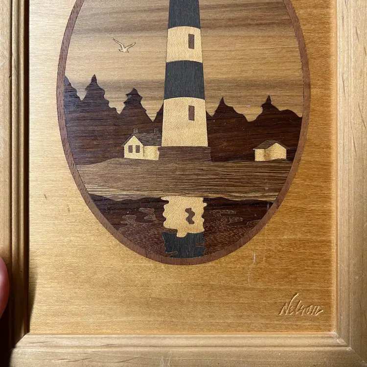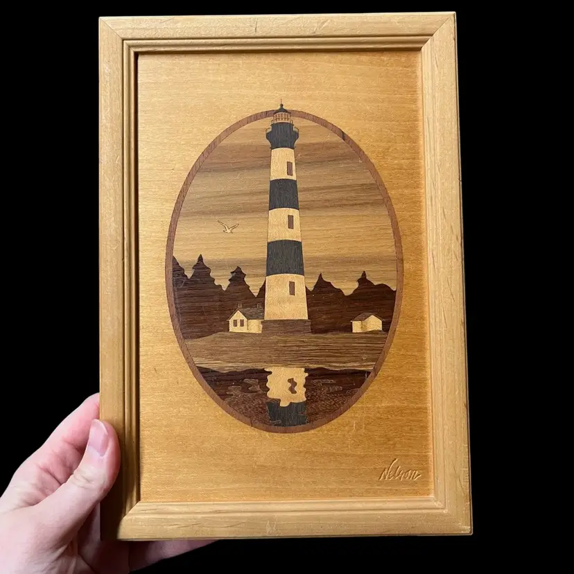 Hudson River Inlay Art “Bodie Island, NC” Lighthouse Wood Inlay Art, Wall Art, Wall Decor, Vintage Art