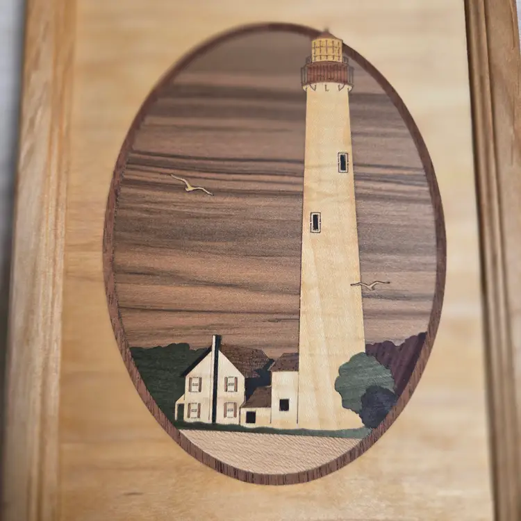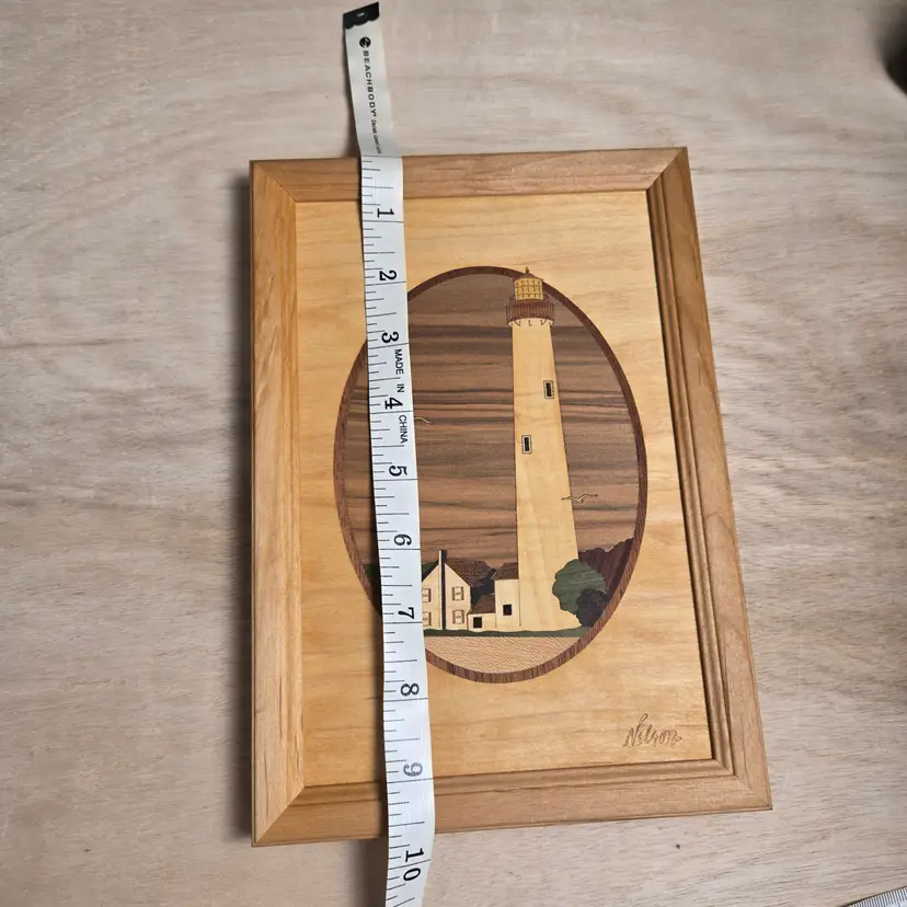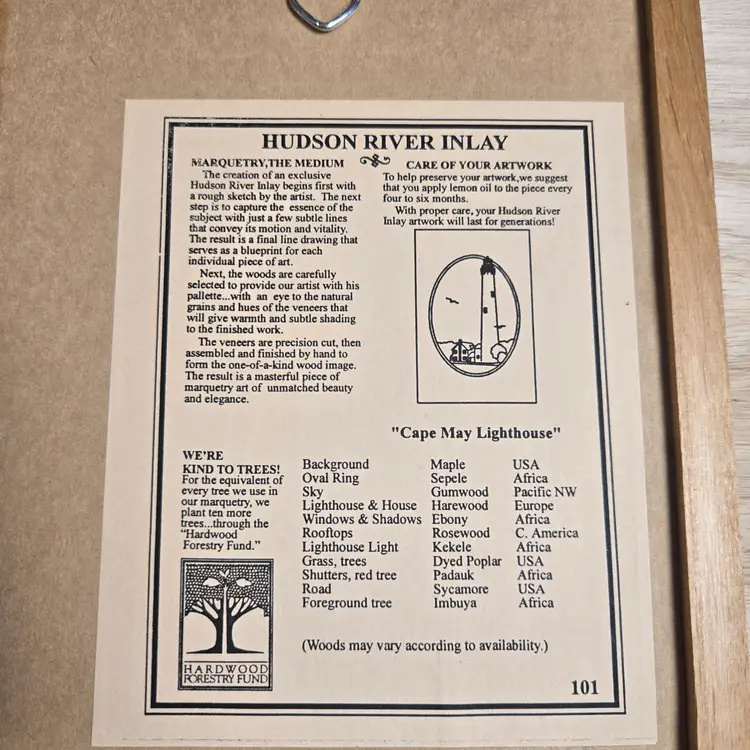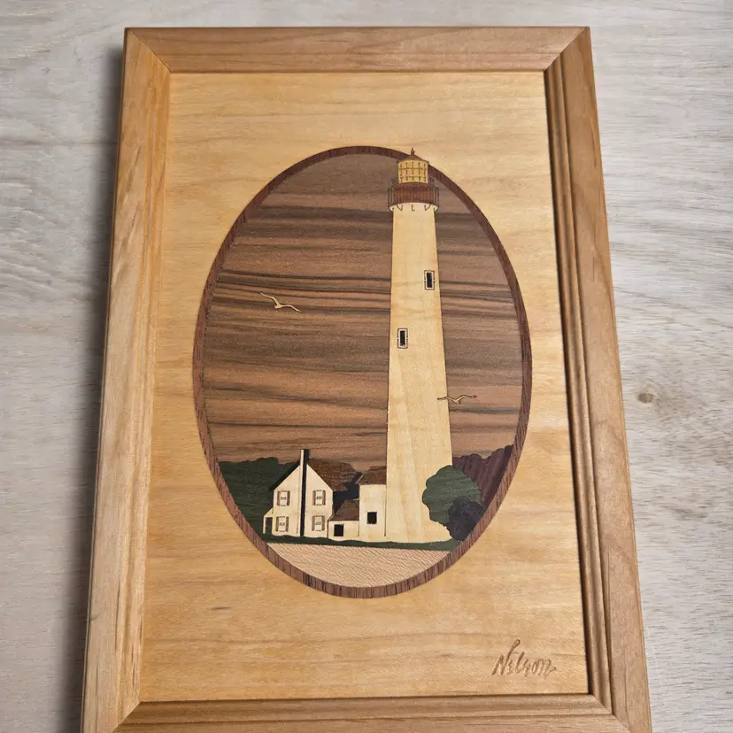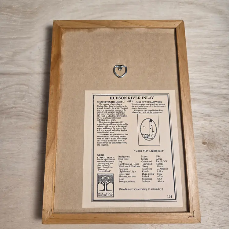 all wood inlay description on back framed and signed