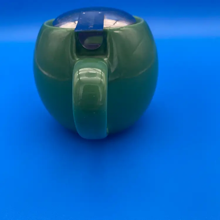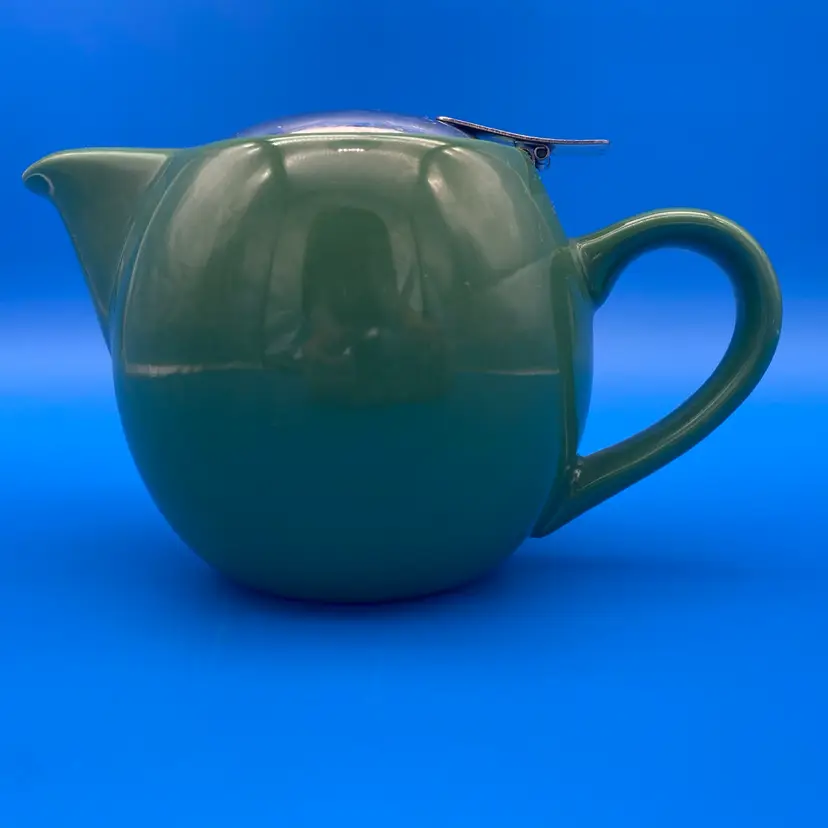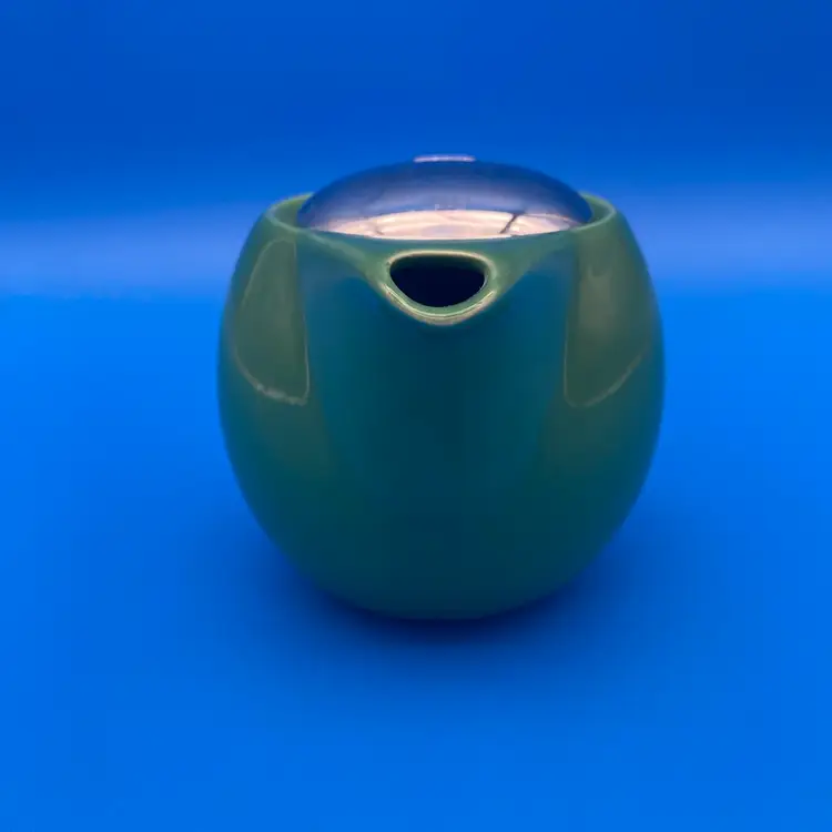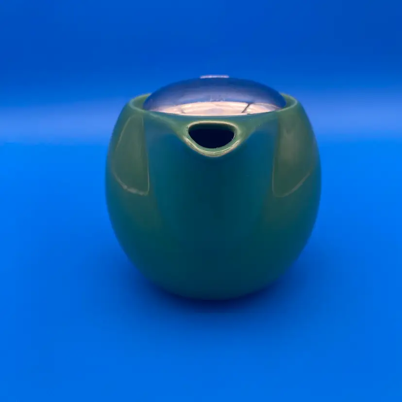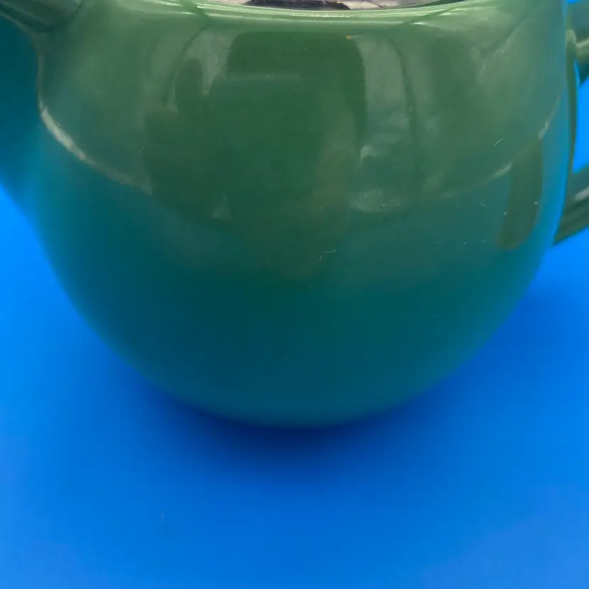 You are purchasing one Green Ceramic Personal Tea Pot w/ Steeper and removeable lid by Hues N Brews. In total, this pot is around 7 inches long, 4 inches wide, and 4 inches tall. This Pot is in great condition. Minimal wear on the steeper insert. No chips, cracks or scratches.
