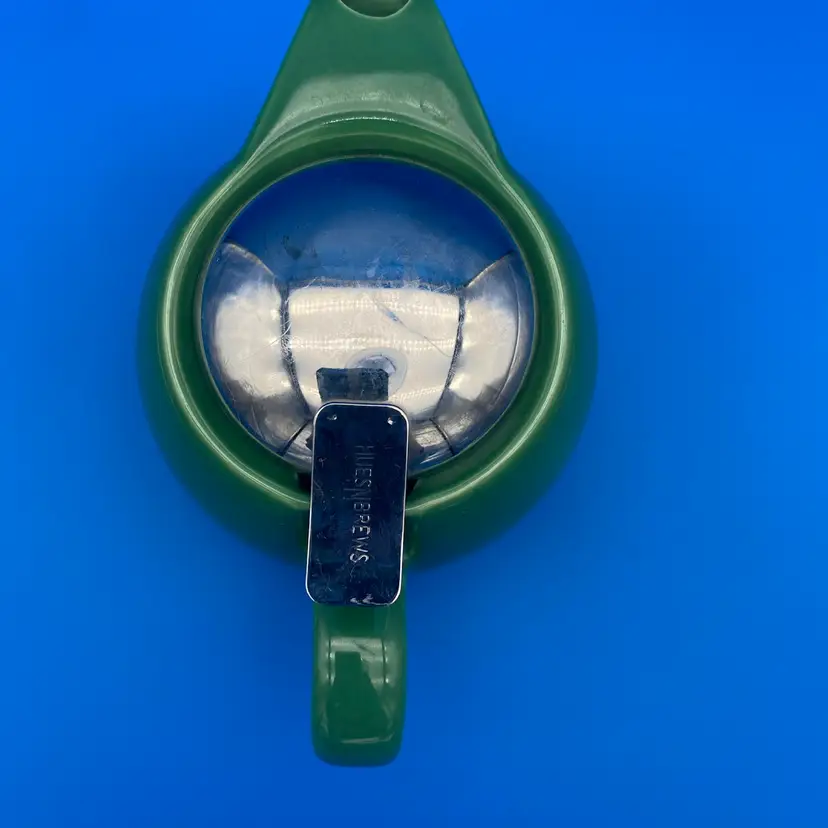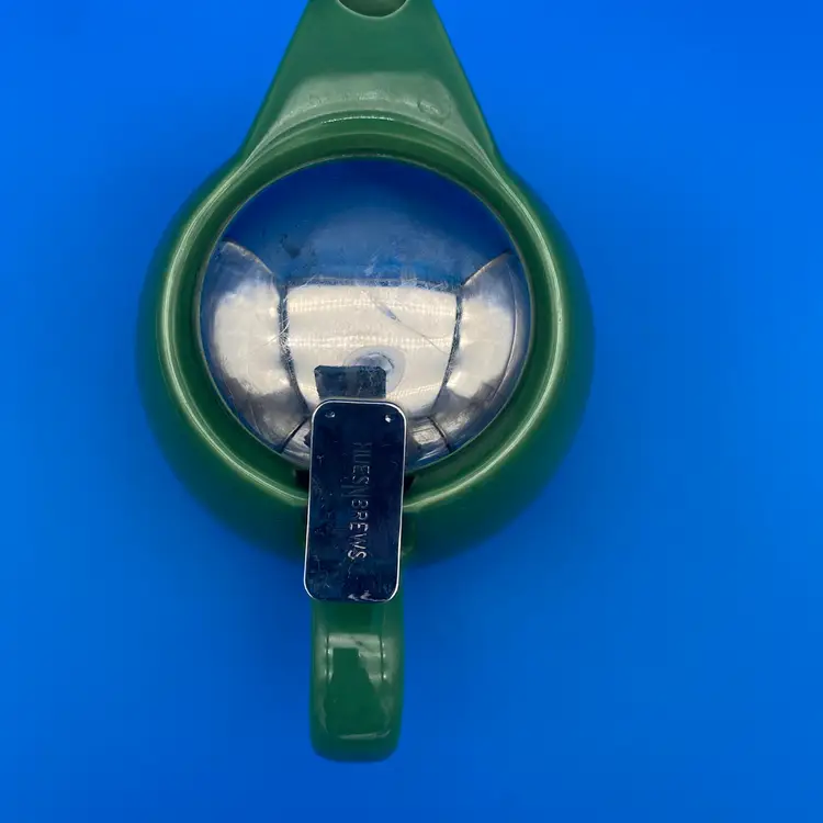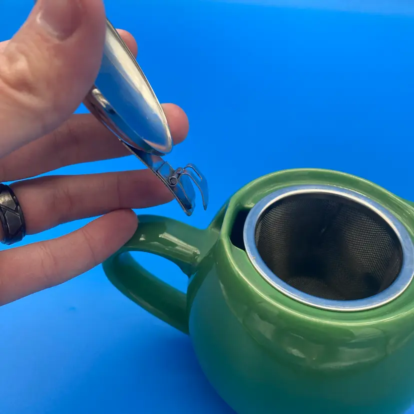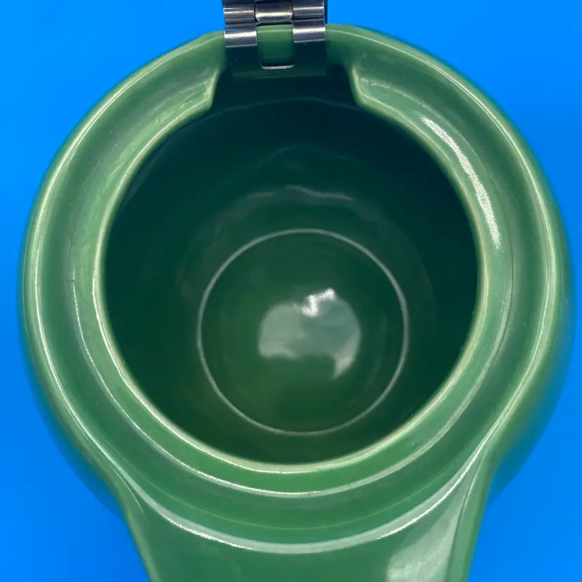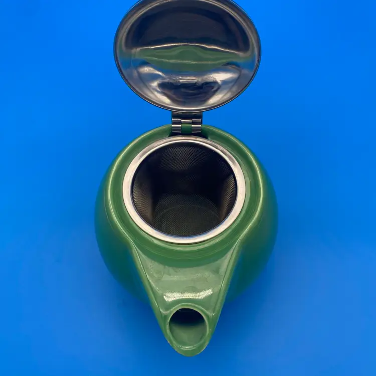 You are purchasing one Green Ceramic Personal Tea Pot w/ Steeper and removeable lid by Hues N Brews. In total, this pot is around 7 inches long, 4 inches wide, and 4 inches tall. This Pot is in great condition. Minimal wear on the steeper insert. No chips, cracks or scratches.