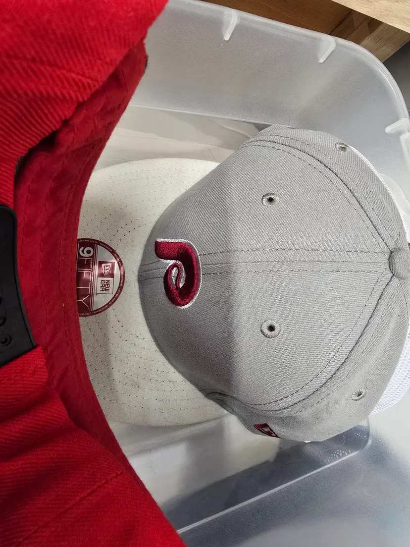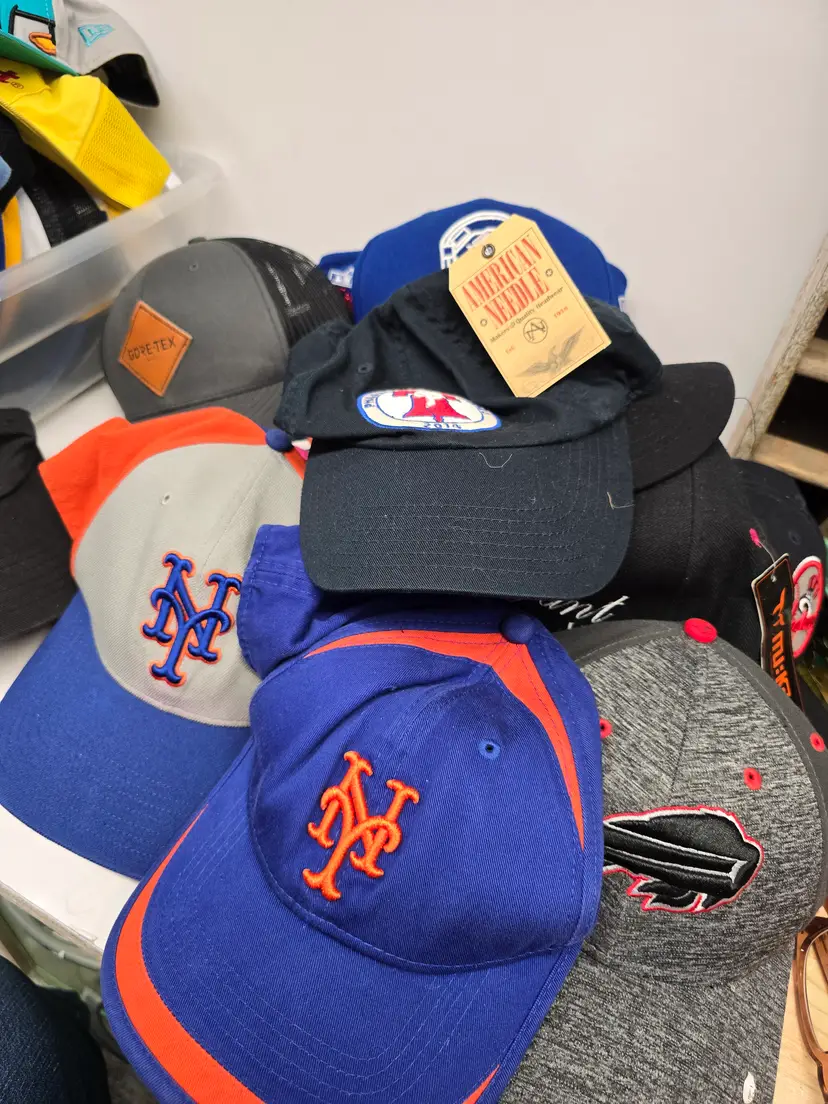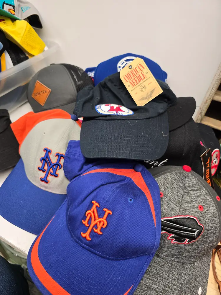 Huge box of over 40 baseball hats. A few need some tlc but most are in very nice condition. A few are new with tags.
