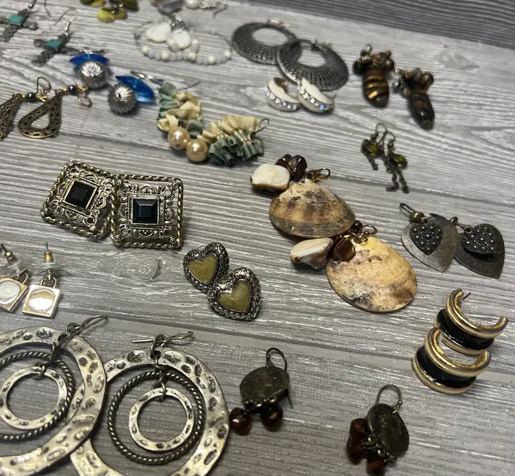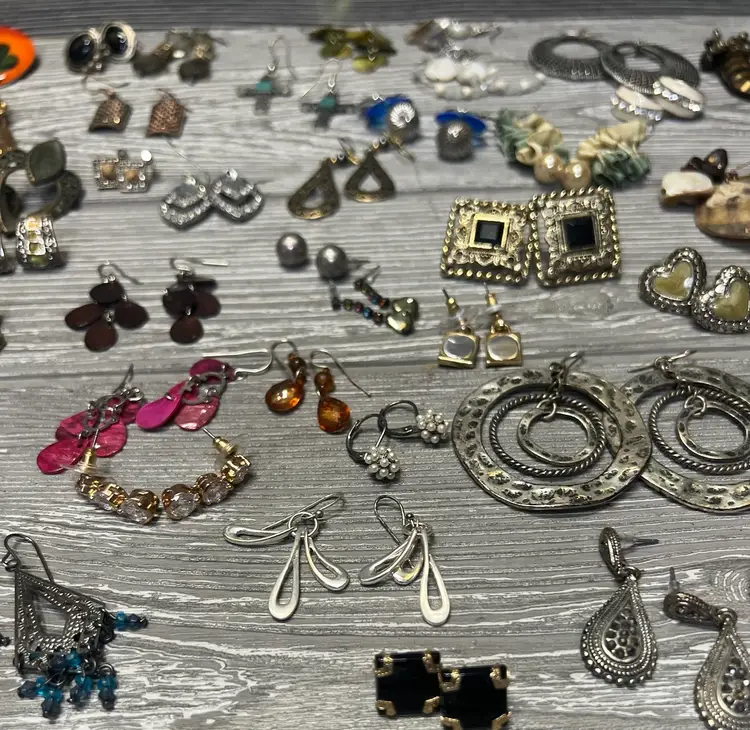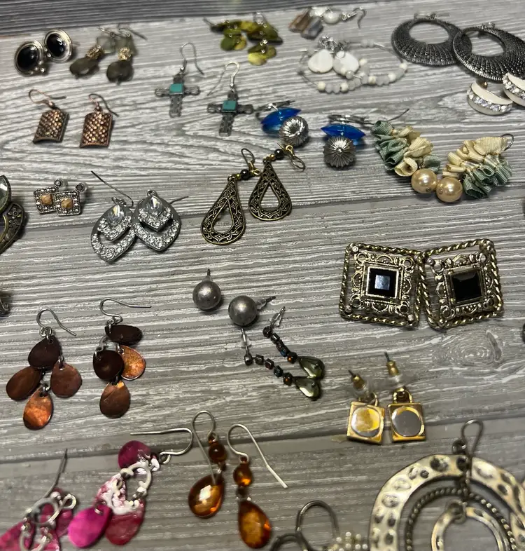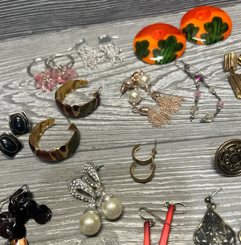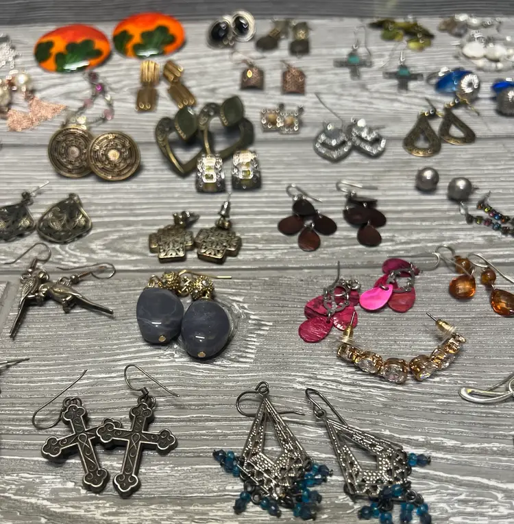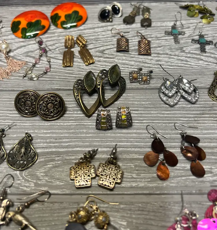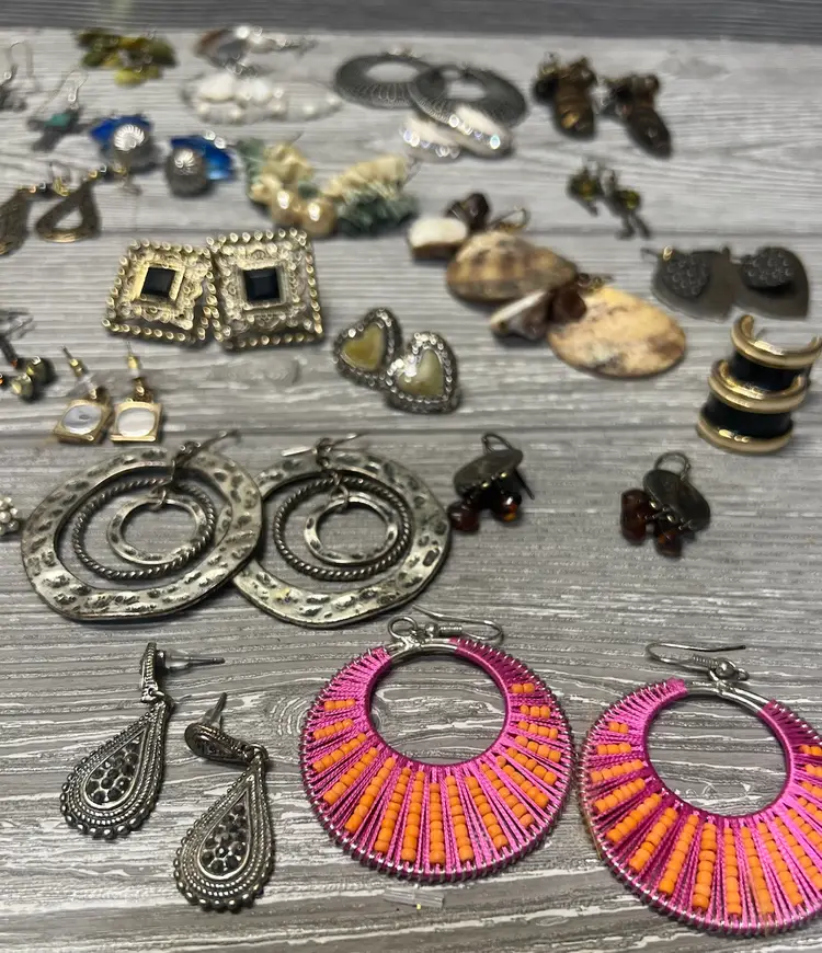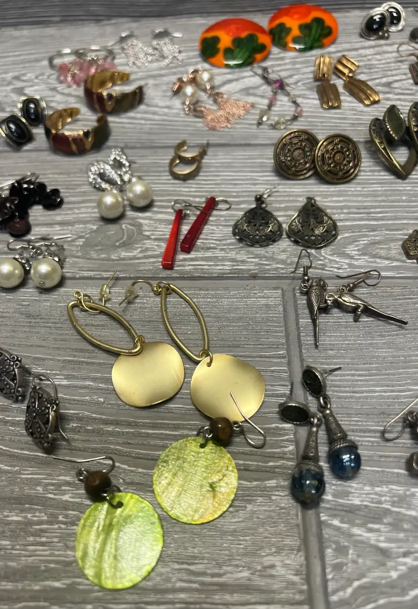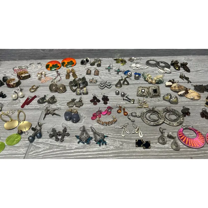 Huge Lot of Pierced Earrings 65 + Pairs Dangle & Stud Fashion Costume Jewelry See Pics