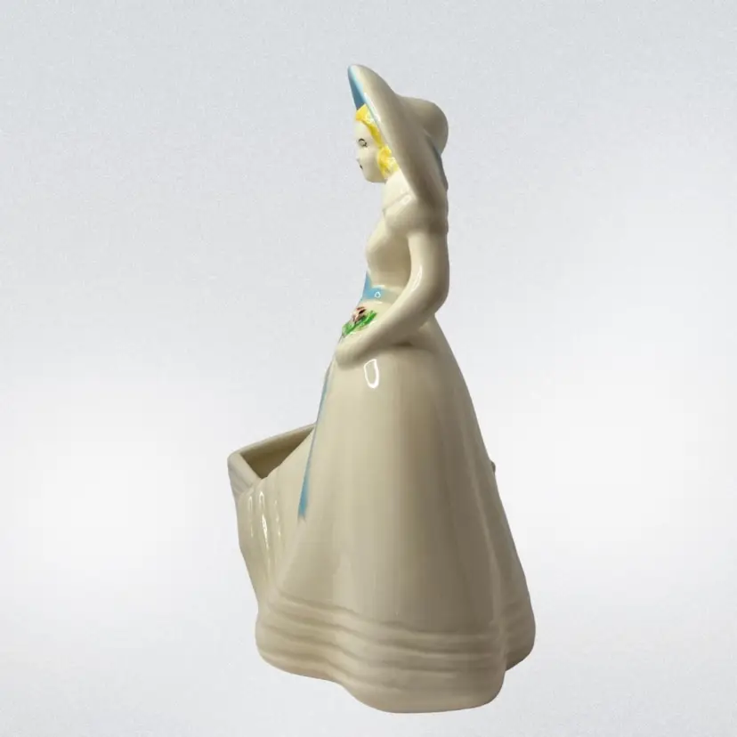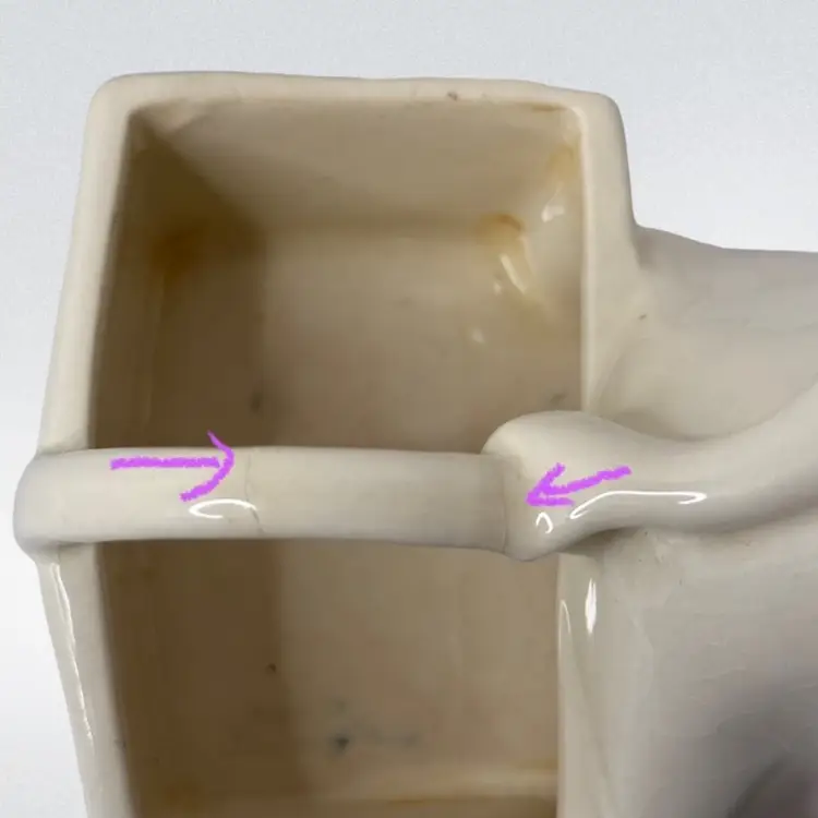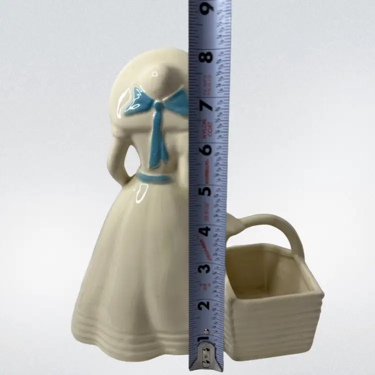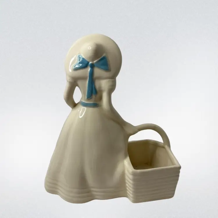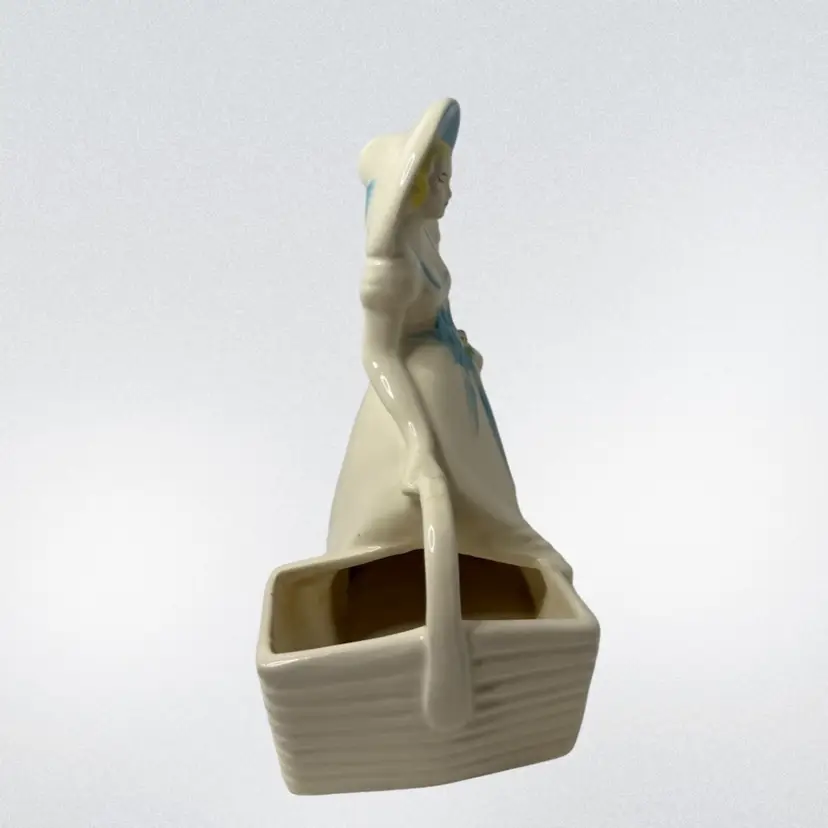 Condition: Crazing typical of age, scratch on underside of hat rim. Chip on bottom, back corner of basket. Some discoloration inside planter from use.