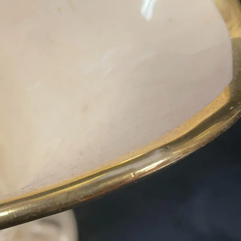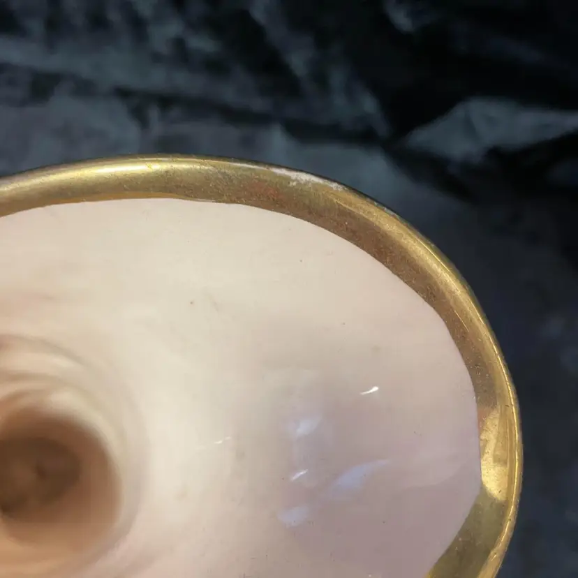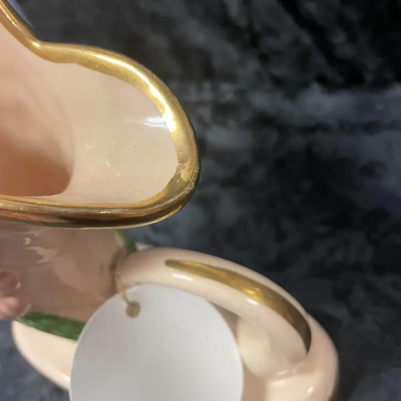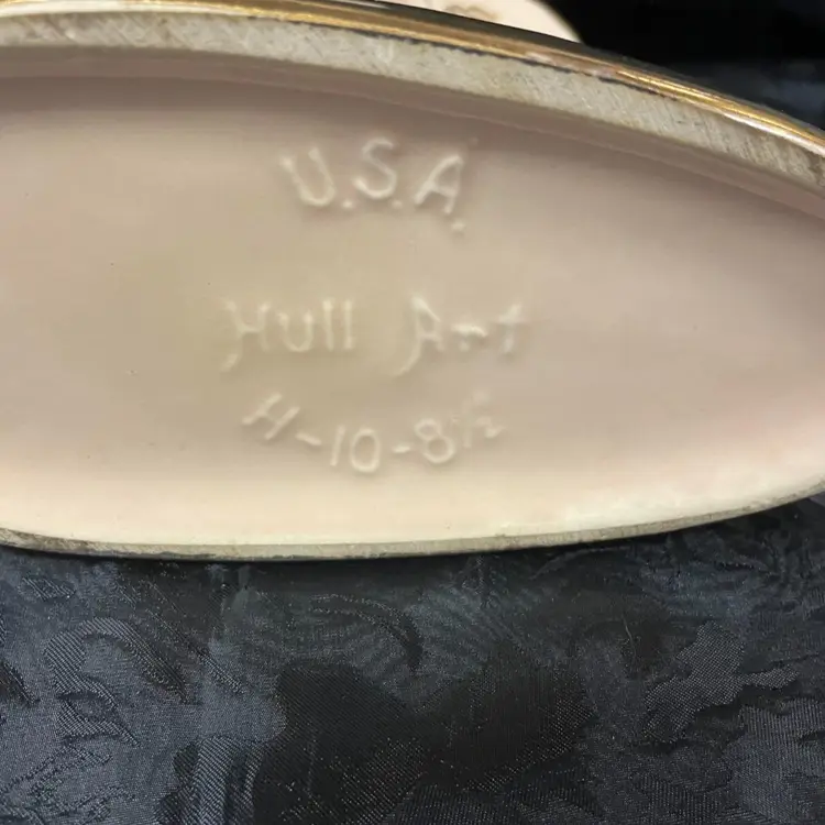 Hull Pink Magnolia Cornucopia Vase in excellent condition Measurements: 8.75" long x 8.75" high x 3.25" wide Some loss to gold detailing as pictured and a small dot of what appears to be paint on the base that is barely noticeable