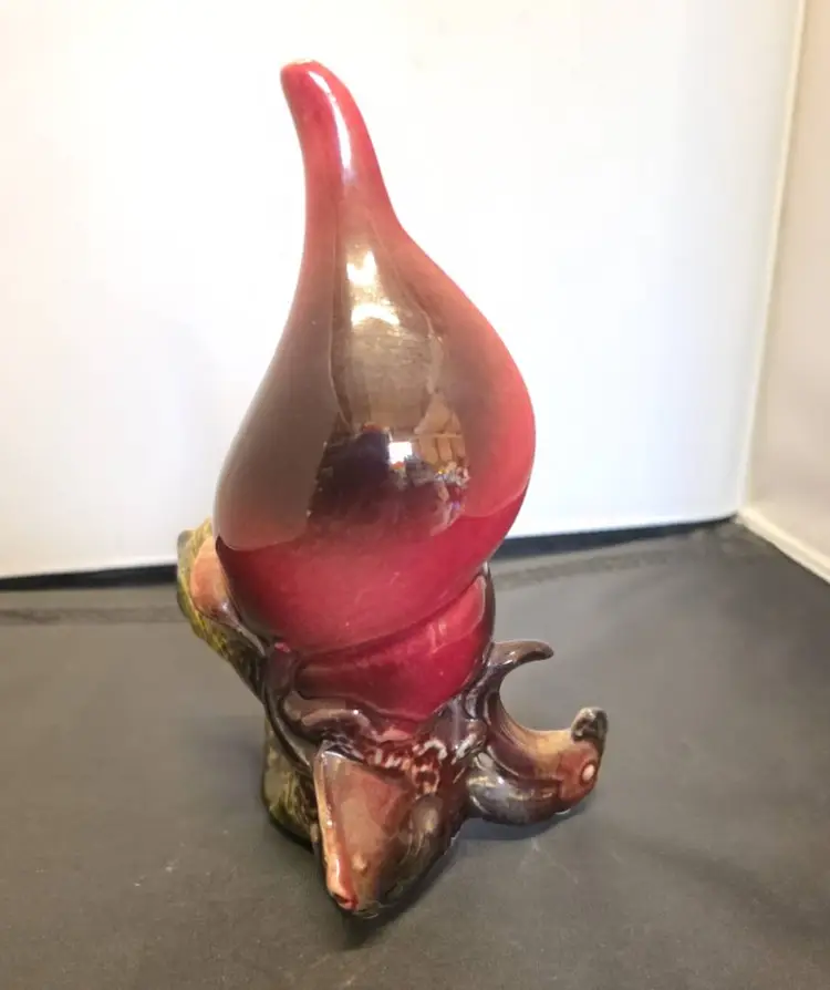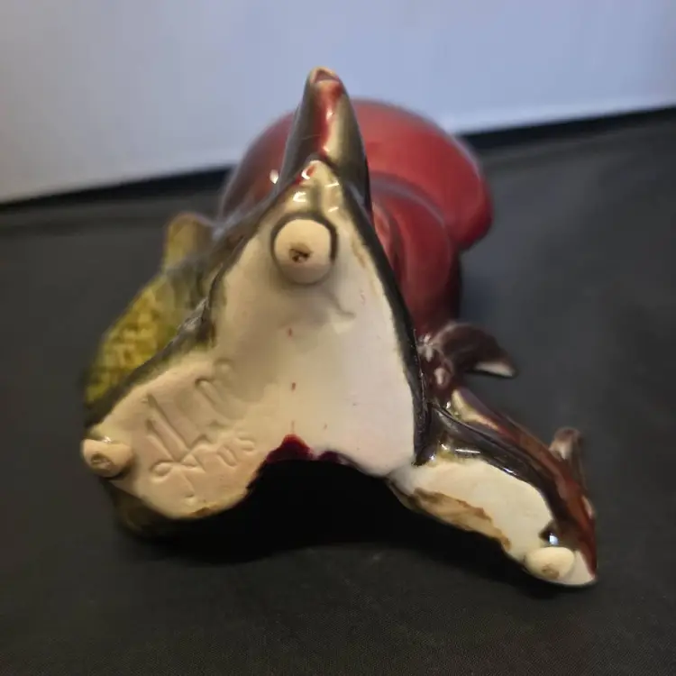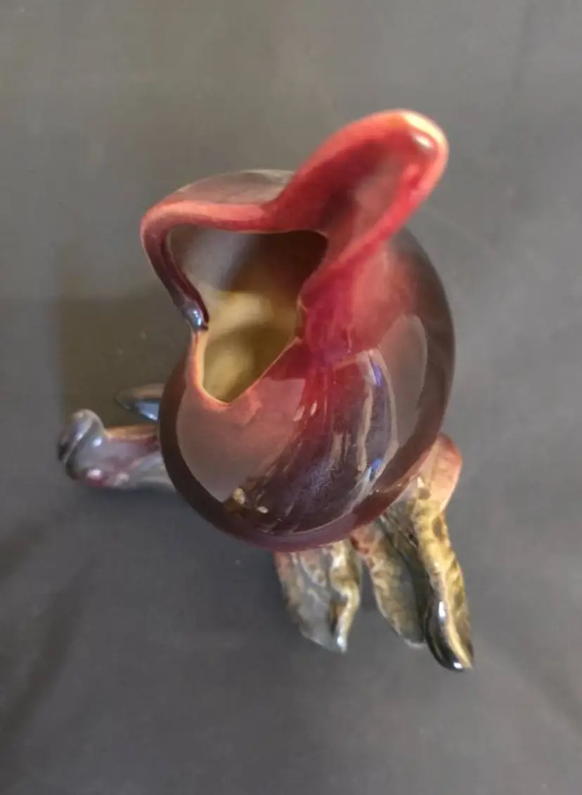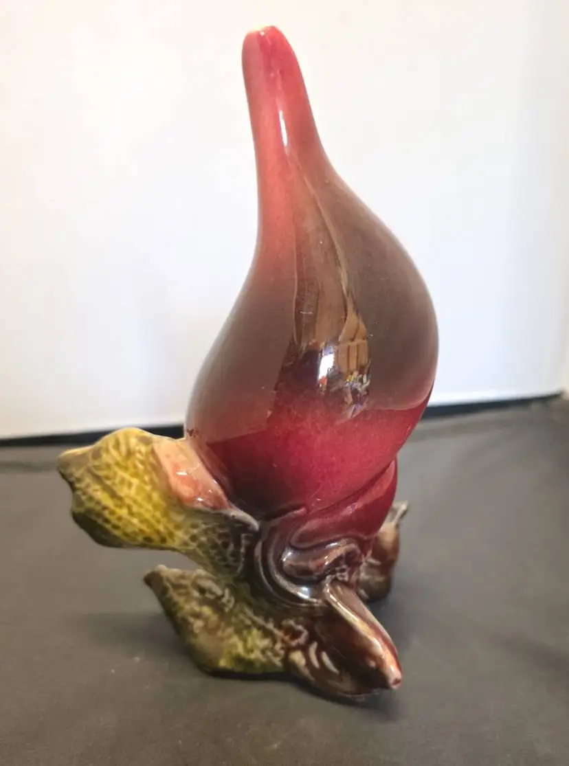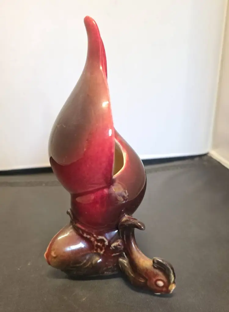 The Hull Pottery Ebb Tide Vintage Seashell Vase is a charming piece of mid-century modern decor, featuring a 3D effect design with a glossy finish. Standing at 7.75 inches tall and 5 inches wide, this original art pottery vase showcases a unique seashell and fish theme, perfect for coastal or nautical-inspired decor. Made in the United States in the 1950s, this multicolored vase in maroon and brown is signed by Hull and boasts a high gloss finish, adding a touch of vintage MCM flair to any space.