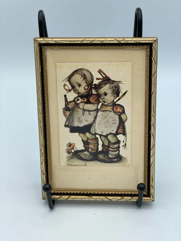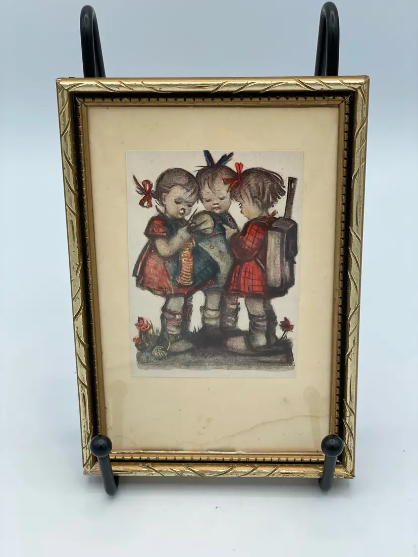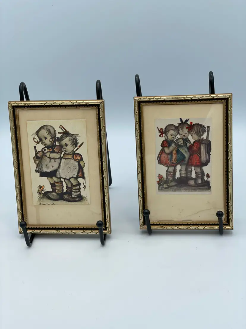 Hummel Prints Framed Set of Two Little Girl Pictures. One Print Has Water Mark (Pictured). Made In Germany. 5" X 3 1/2"