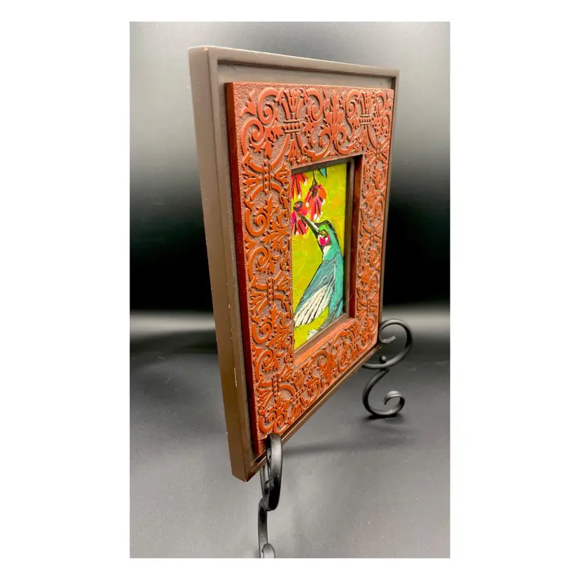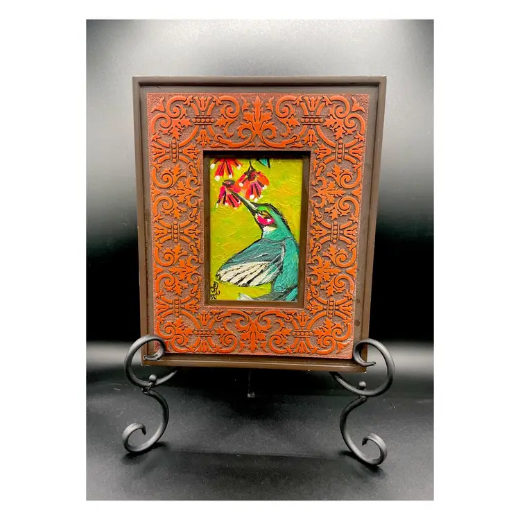 New original painting on 4”x6” watercolor paper in 9”x11” preloved frame. No glass. Good condition. This will need an easel for displaying on #1114