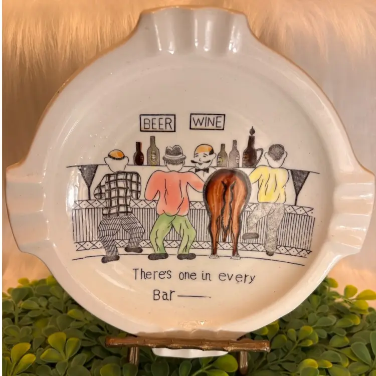 Humorous Antique Ashtray “Jackass In Bar” Vintage 1940s 7.5” Excellent Condition