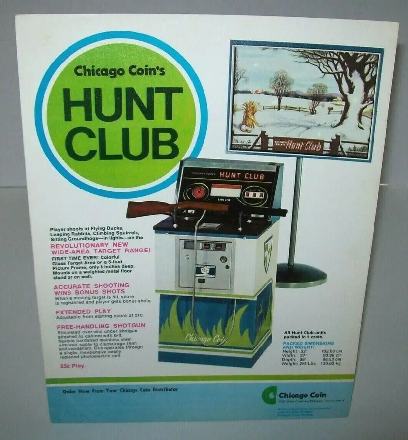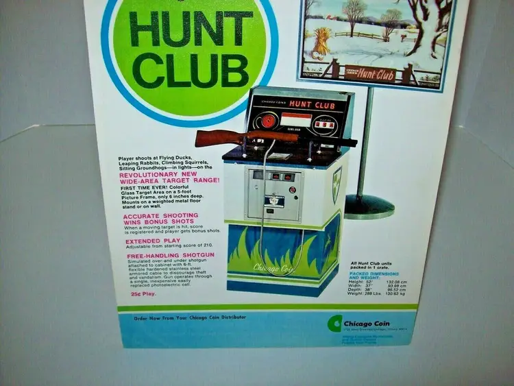 Modified Item: No Country/Region of Manufacture: United States Original/Reproduction: Original Year: 1976 Game Title: Hunt Club Brand: Chicago Coin Arcade: Flyer