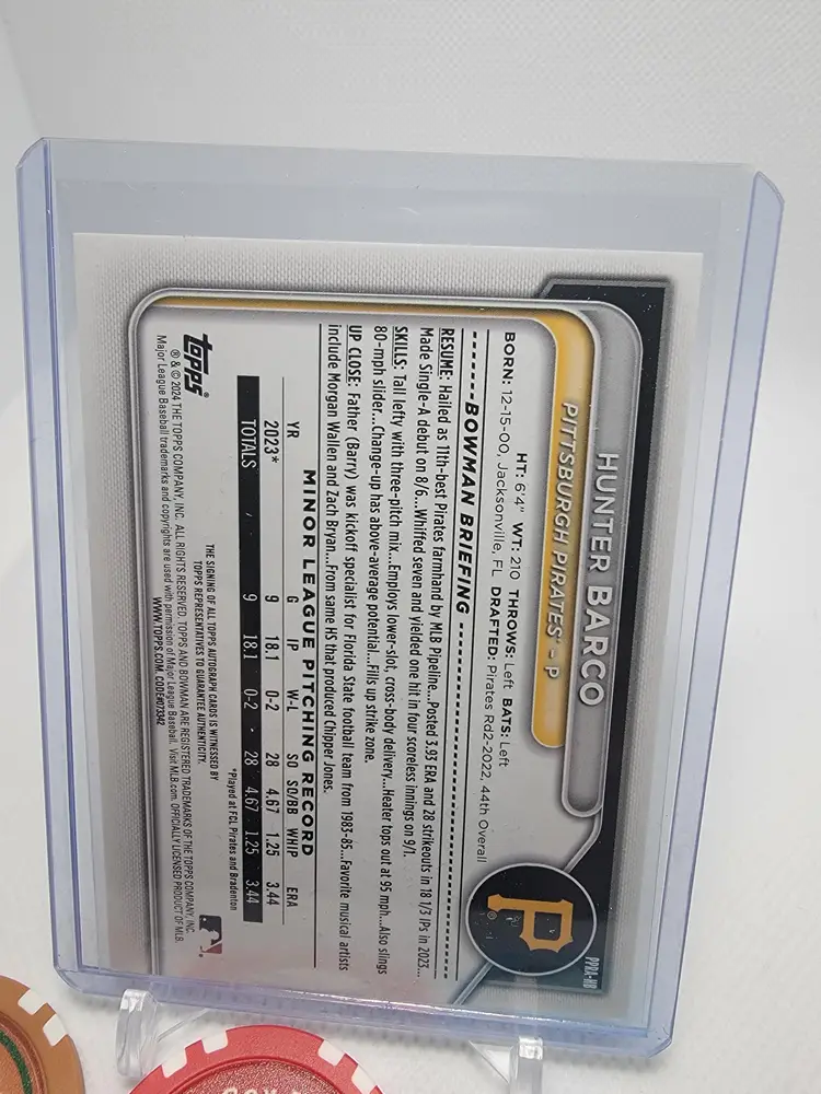 Hunter Barco 2024 Bowman Paper Prospect Auto Pittsburgh Pirates