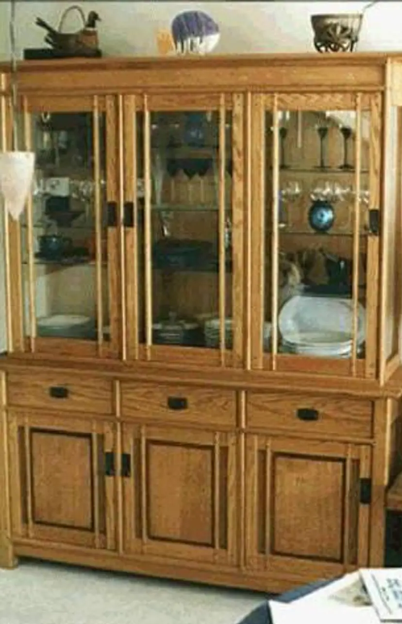 Hutch made of solid white Oak in the Arts and Crafts style featuring hidden pin and spring hinges, Whitechapel hand forged pulls, and Oak pegs.