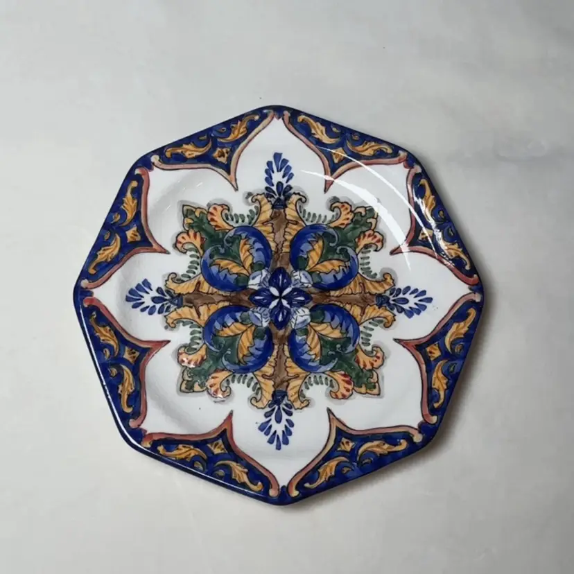 The I Godinger & Co Stoneware Spanish Style Octagon Plate is a hand-painted, glossy finish plate that is perfect for all occasions. Made from durable stoneware, this 8-inch octagon shaped plate features intricate Spanish-style details. Produced using pottery techniques, this original piece by Godinger is sure to add a touch of elegance to any table setting.