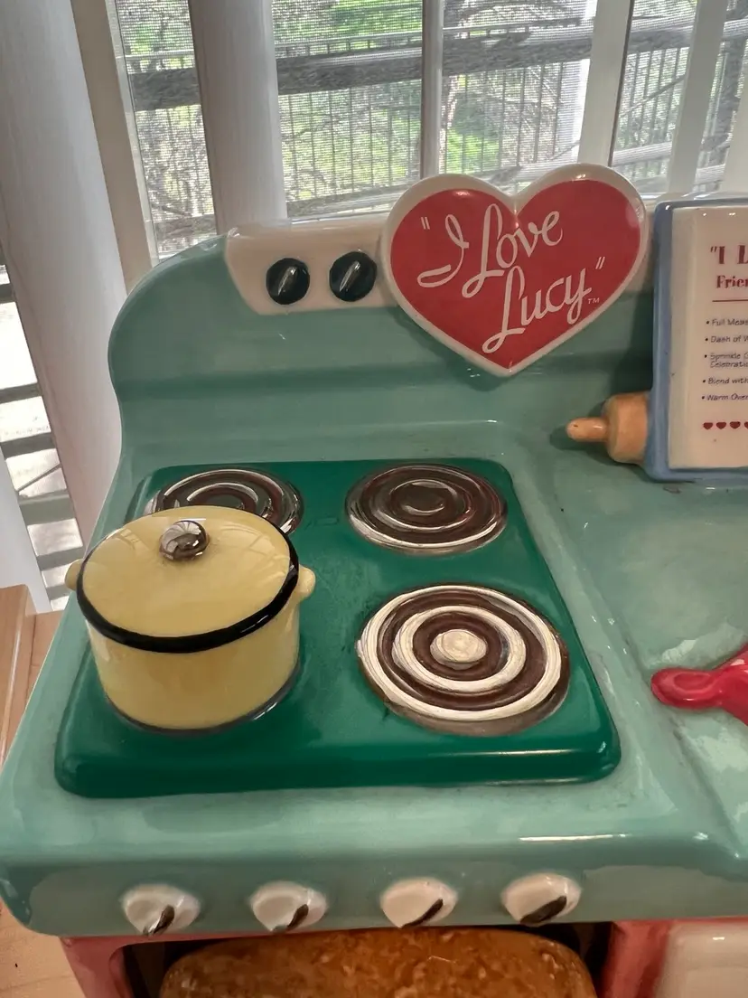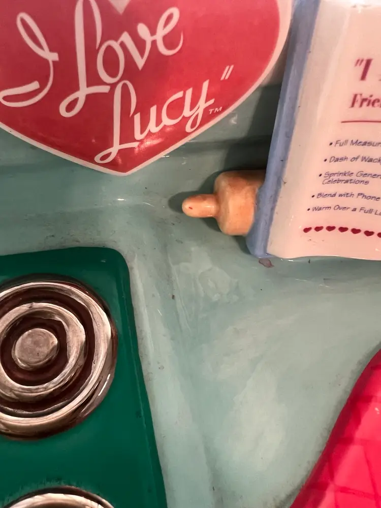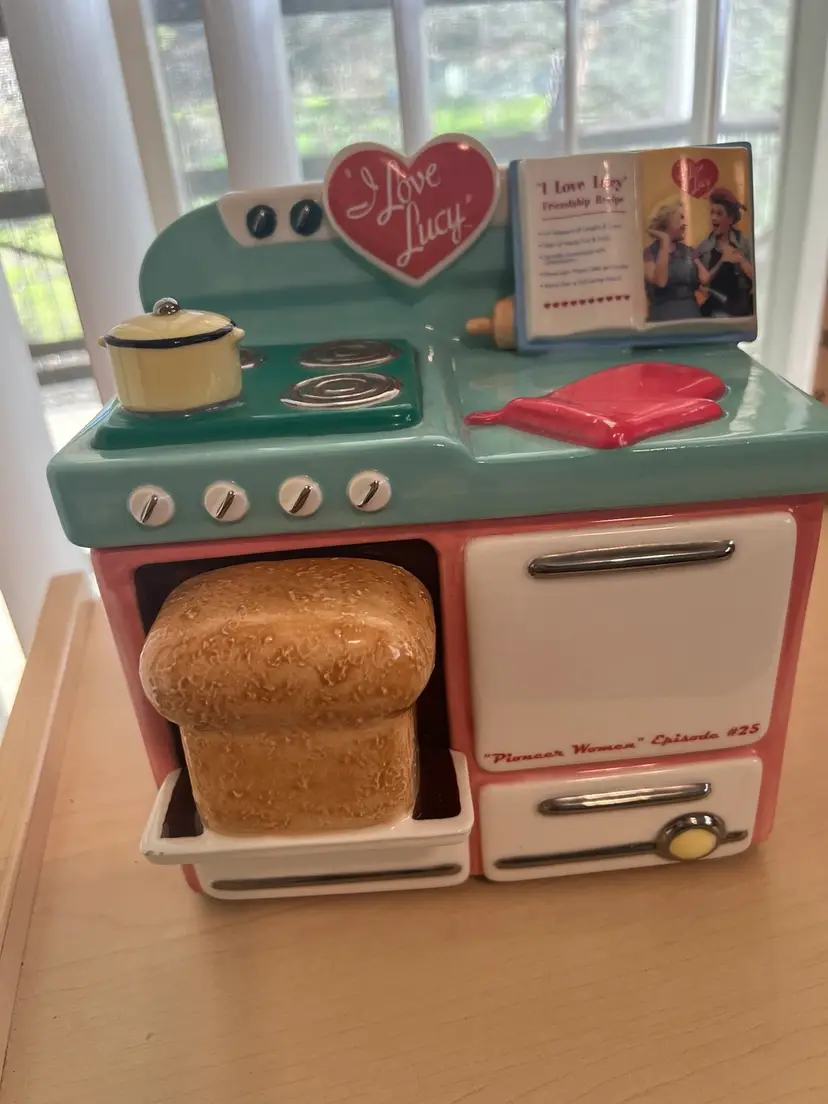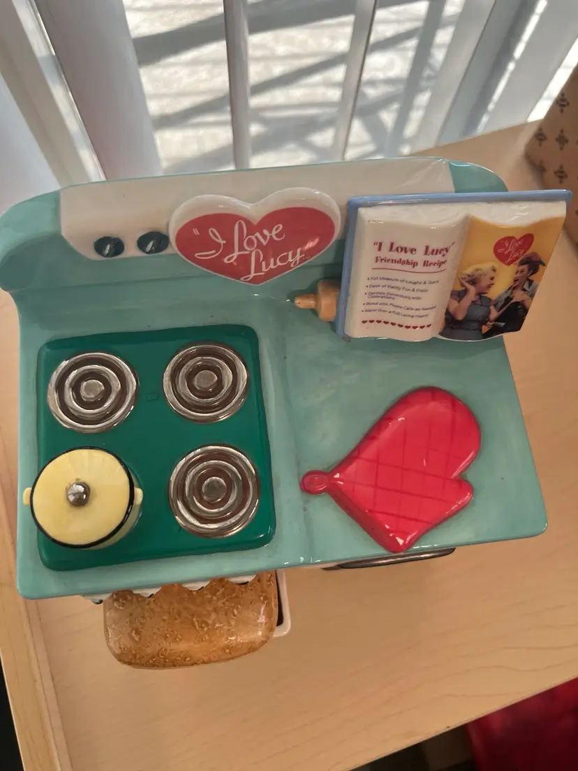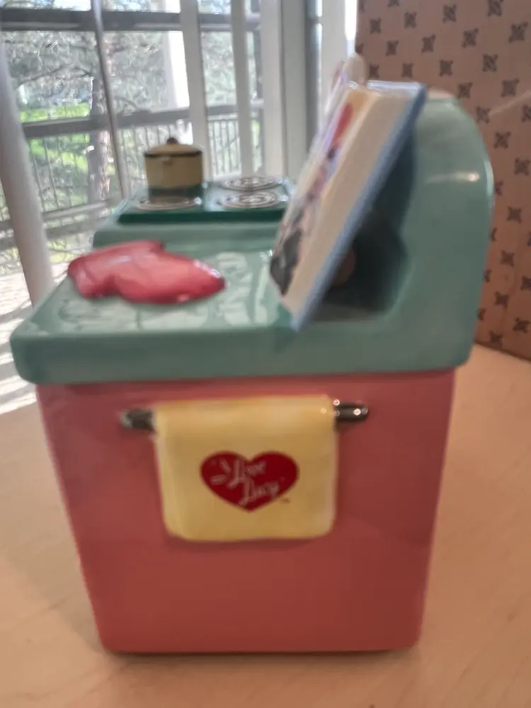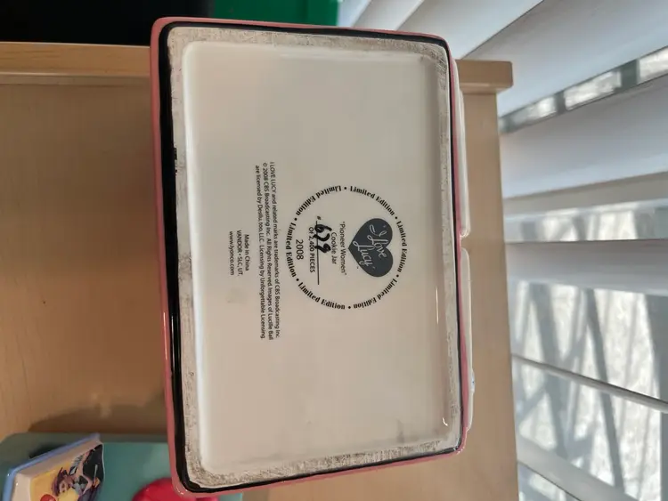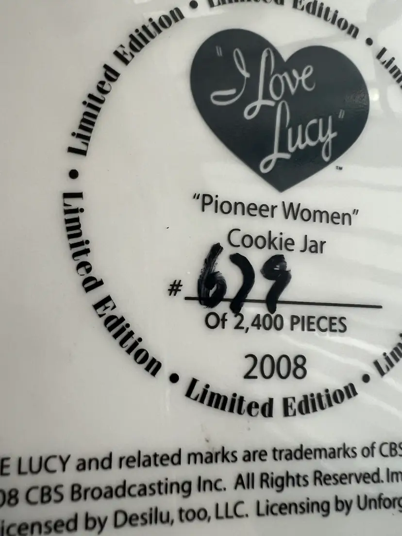 #679 of 2400 limited edition “I love Lucy” cookie jar great condition, just a little ware on the red oven mitt. No chips or cracks