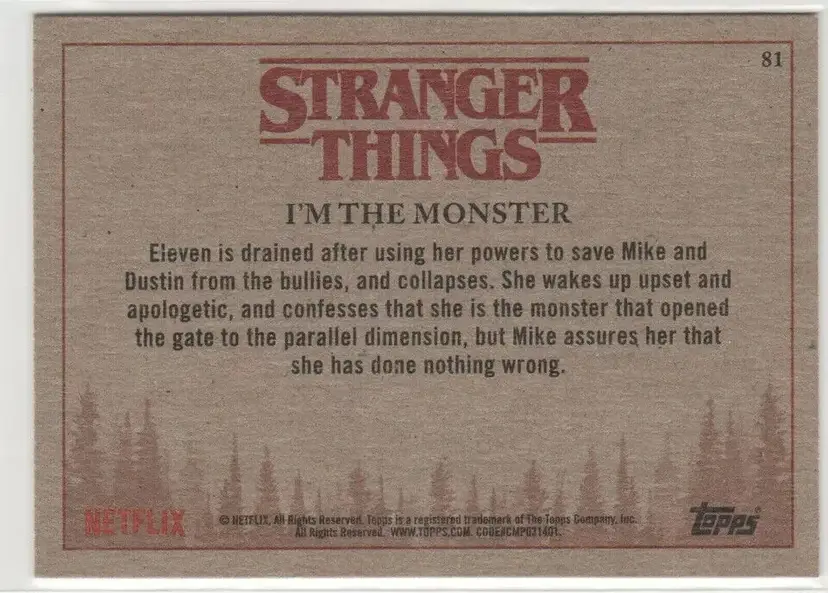 I'm the Monster #81 2018 Topps Netflix Stranger Things Season One streaming series trading card Millie Bobby Brown as Eleven