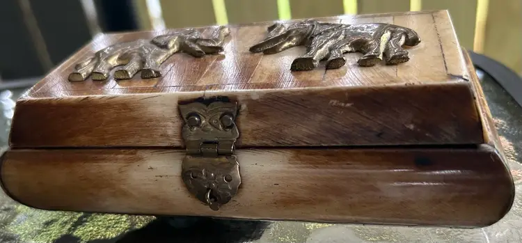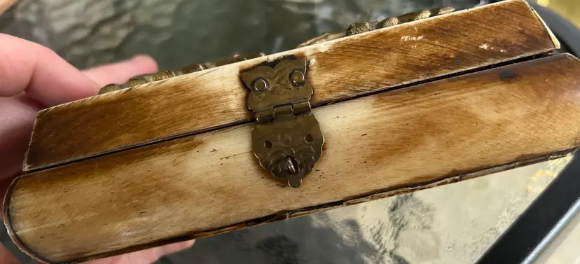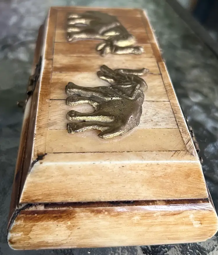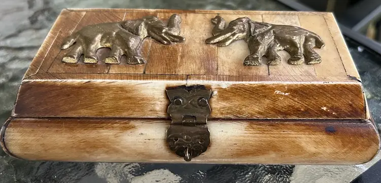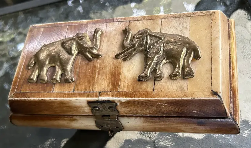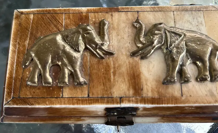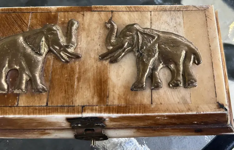 Made of ivory, brass elephants, beautiful piece. 6 in wide