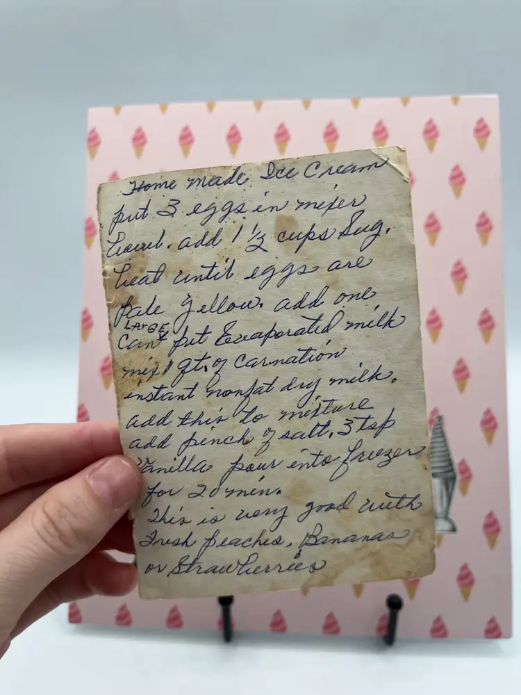Matting measures 8” x 10” Ice cream image sources from 1980s book reproduction of 19th century wood block prints.