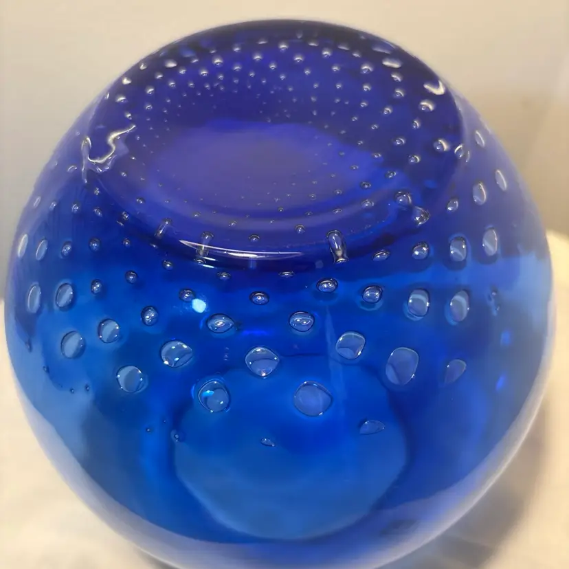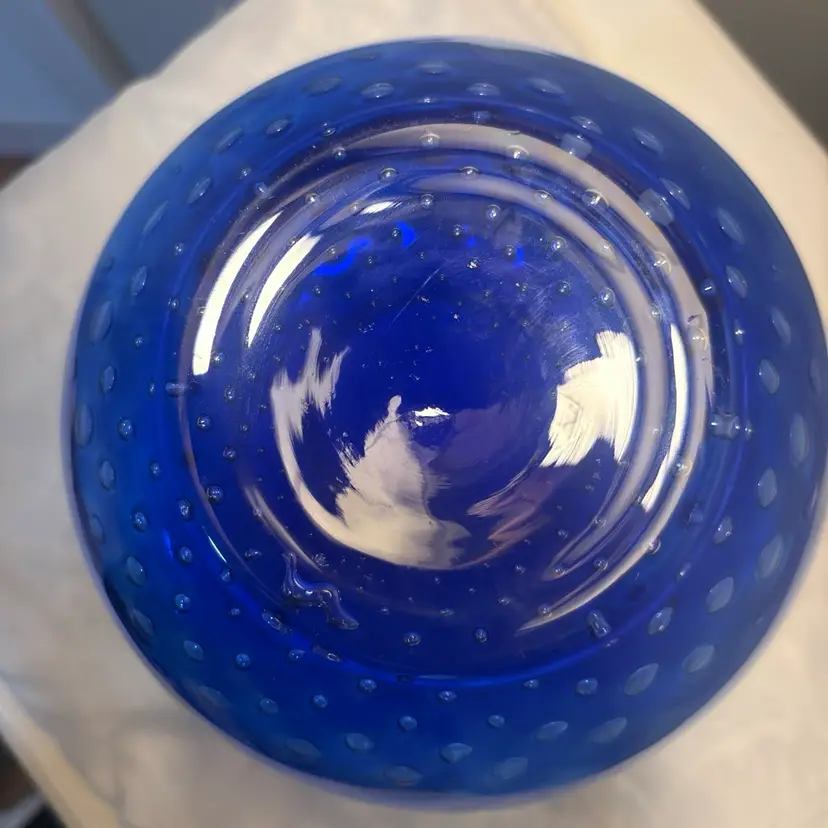 Ichendorf Milano art glass vase in cobalt blue with controlled bubbles design. Price is firm