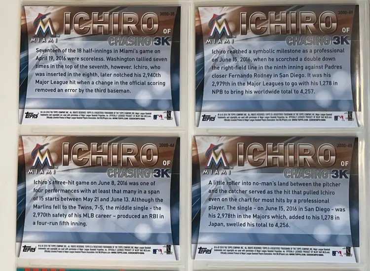 Lot of 4 different 2016 Topps inserts featuring path to 3000 hits. $1.50 shipping via non machinable PWE (stacks with other listings)