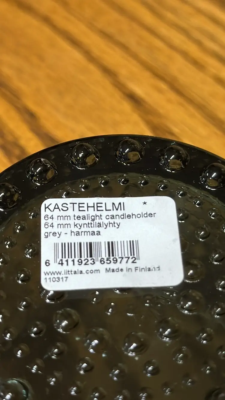 iittala Kastehelmi Votive smoky grey (grey-harmaa) Candle holder tea light Raised dots Made in Finland 2.5” tall 3” diameter (5726241)