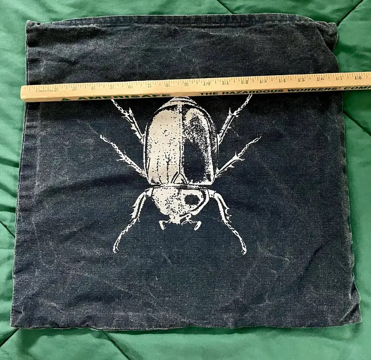 This IKEA White Screen-Print-Style Beetle Graphic on Darker Denim 18 x 18 (see actual measurements in photos) Pillow Case Cover features a solid pattern with intentional striating through denim to give it a slightly “distressed” look, accented with a graphic design of a Large Beetle. The pillow cover is made of 100% cotton. It is designed with a modern style and features a zipper closure. Perfect for those interested in coleopterology and entomology, this unique pillow cover adds a fun and distinct touch to any room. Machine washable and weighing 5 ounces, this pillowcase was freshly washed just prior to photographing for this listing, this pillow cover is a versatile and stylish addition to your home decor.
