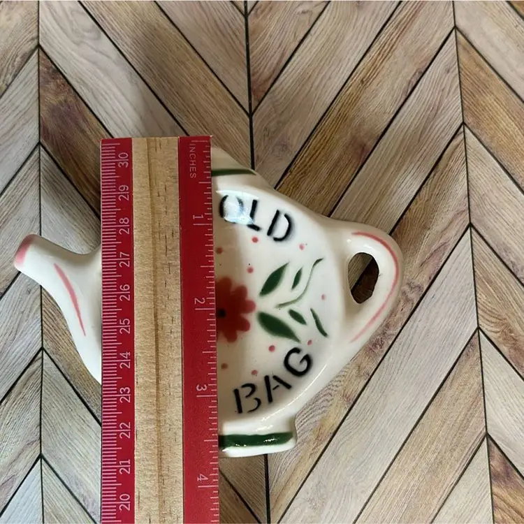 Measures 4 1/2” from spout to handle and 3 3/4” from top to bottom.