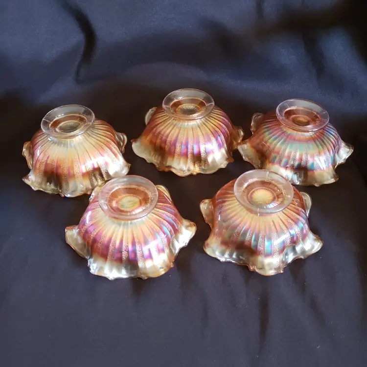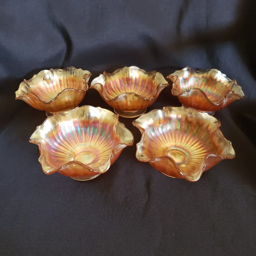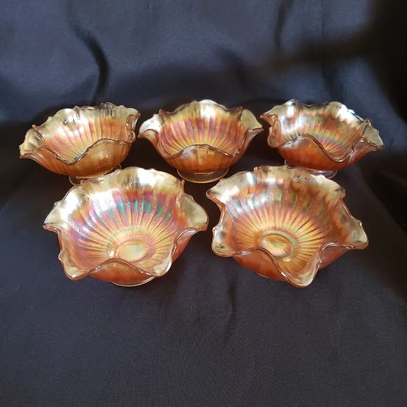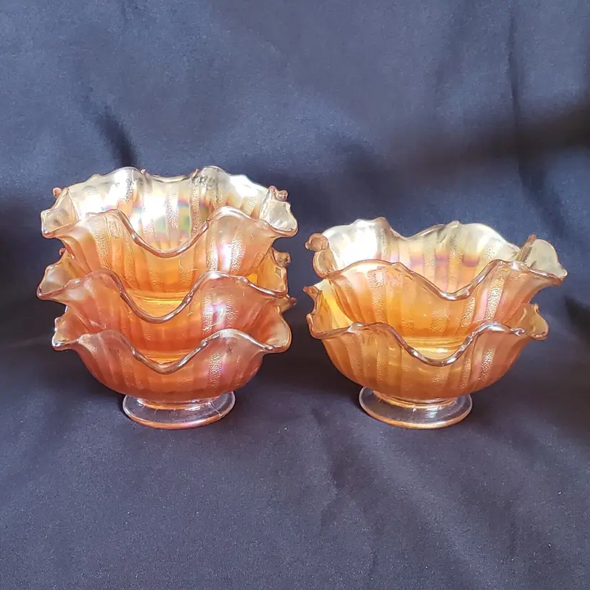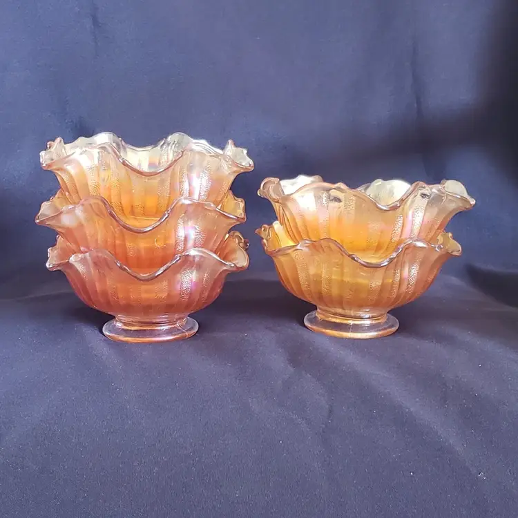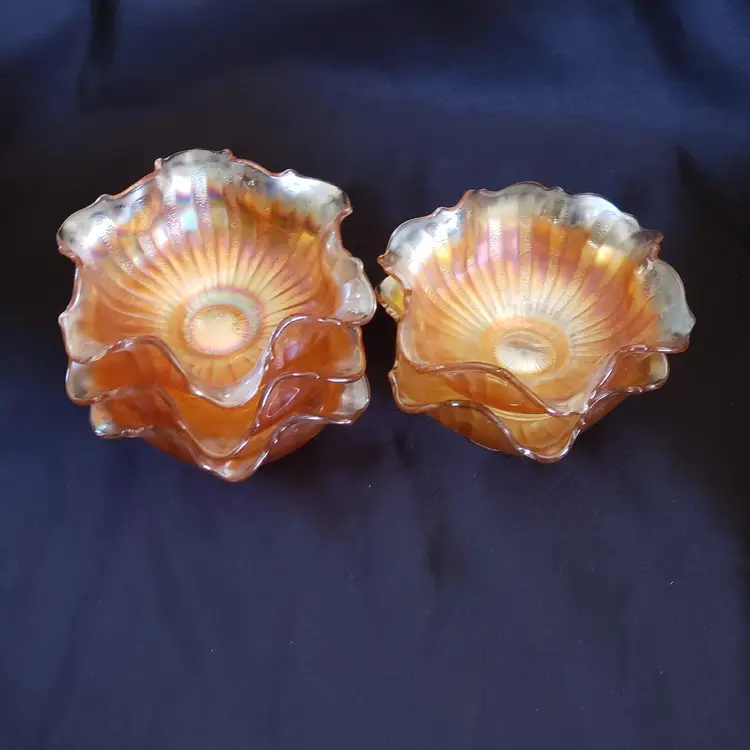 Brand: Unmarked Pattern: Vintage Type: Bowl Color: Orange Set Includes: Bowl Set Material: Glass Production Style: Carnival Glass