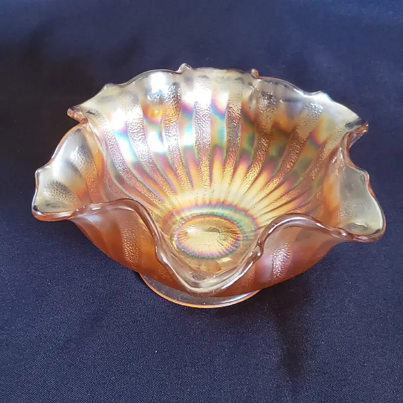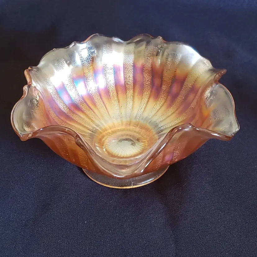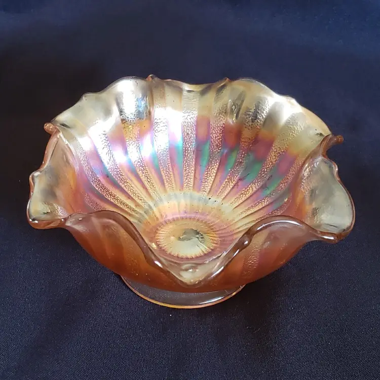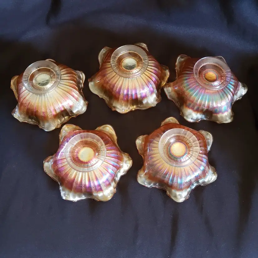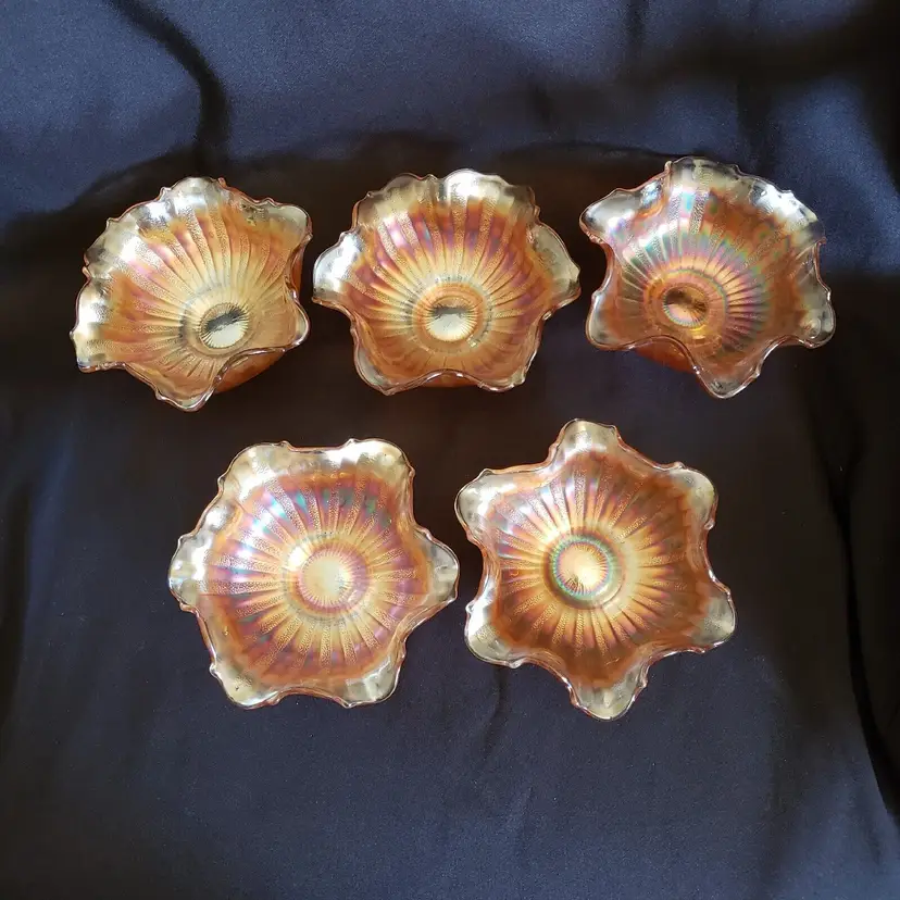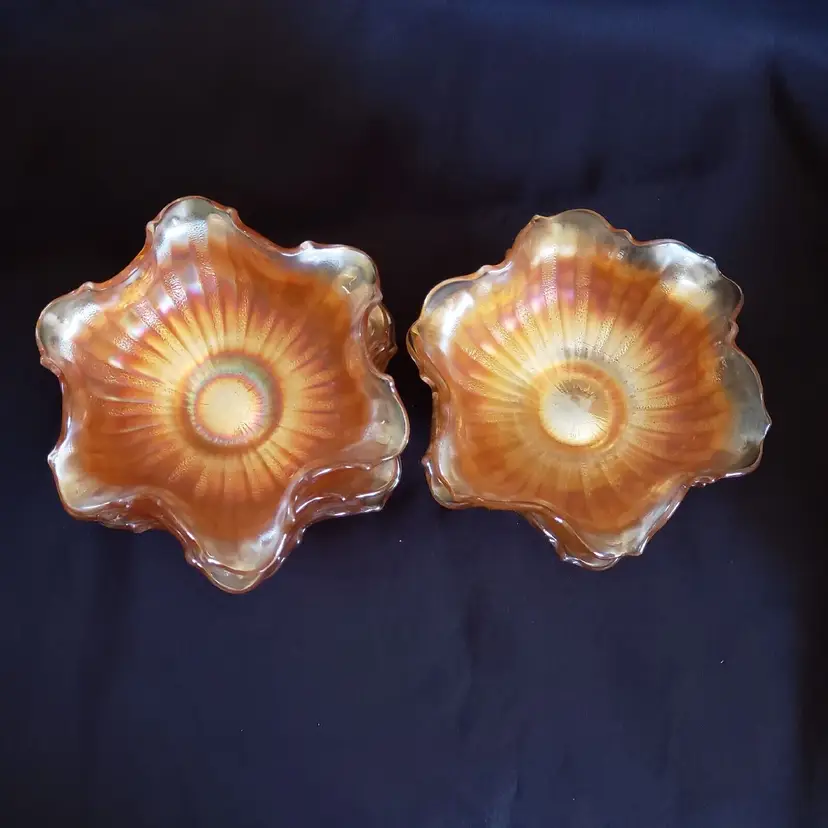 Brand: Unmarked Pattern: Vintage Type: Bowl Color: Orange Set Includes: Bowl Set Material: Glass Production Style: Carnival Glass