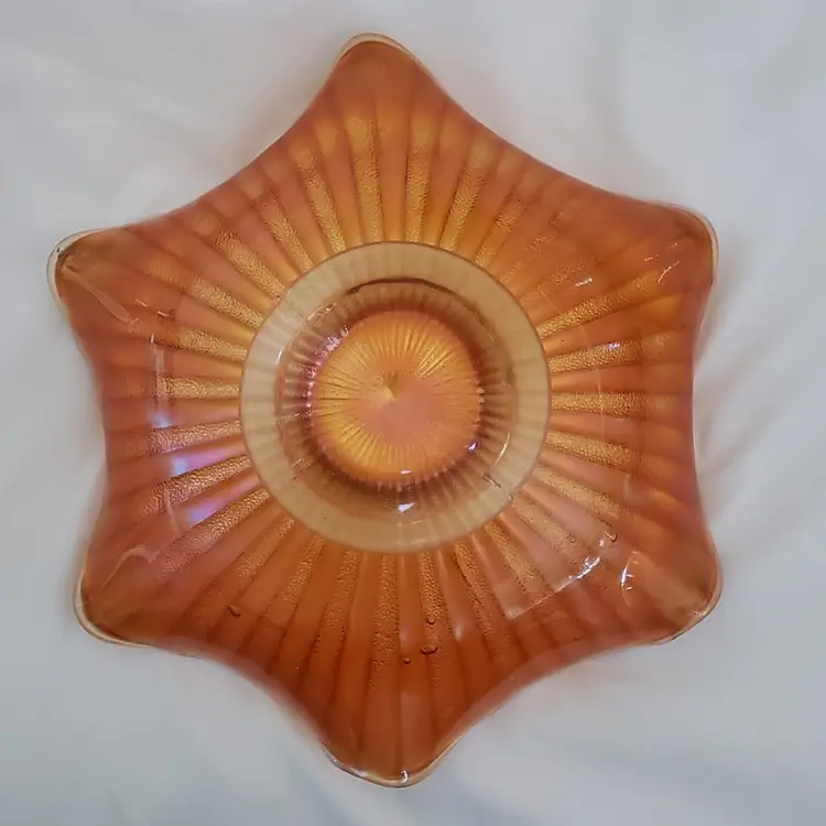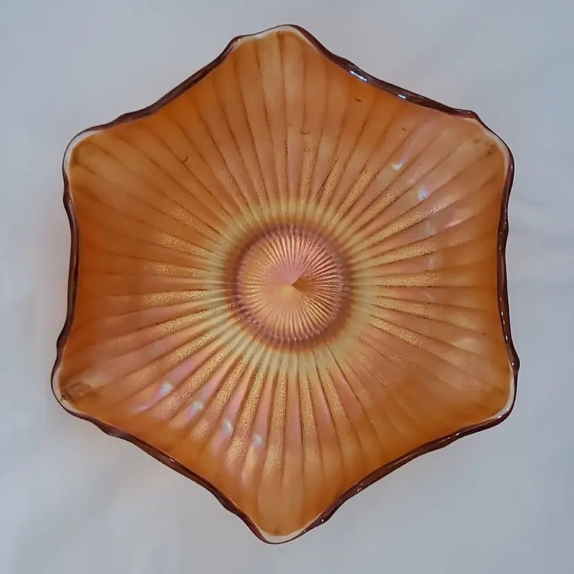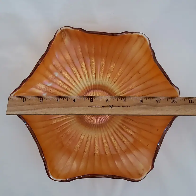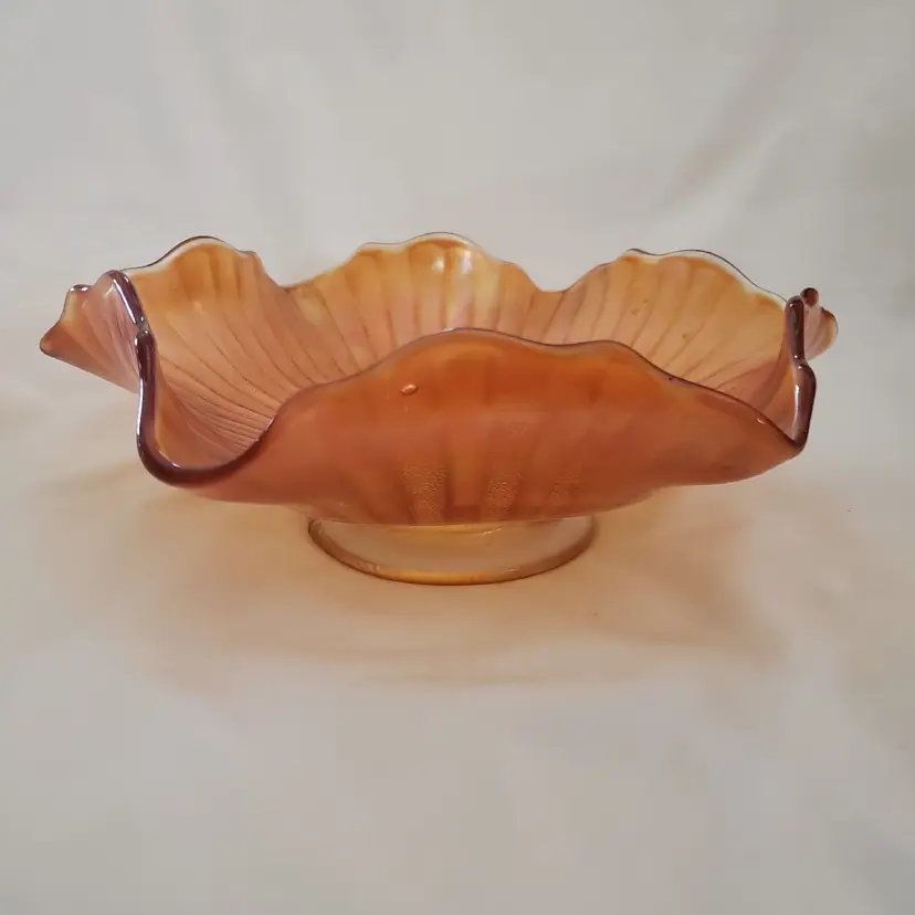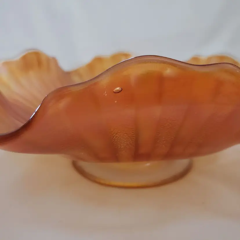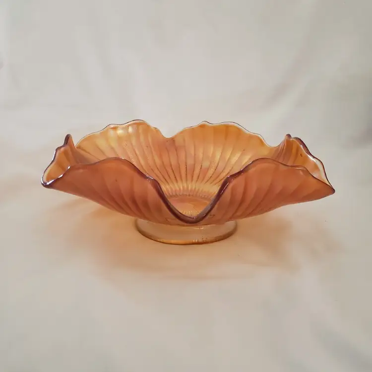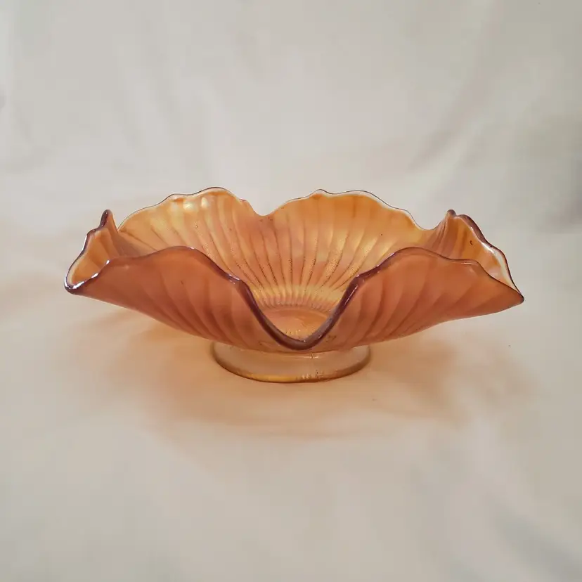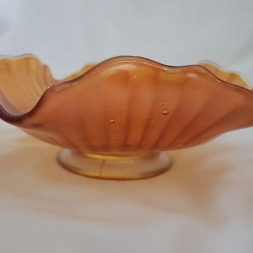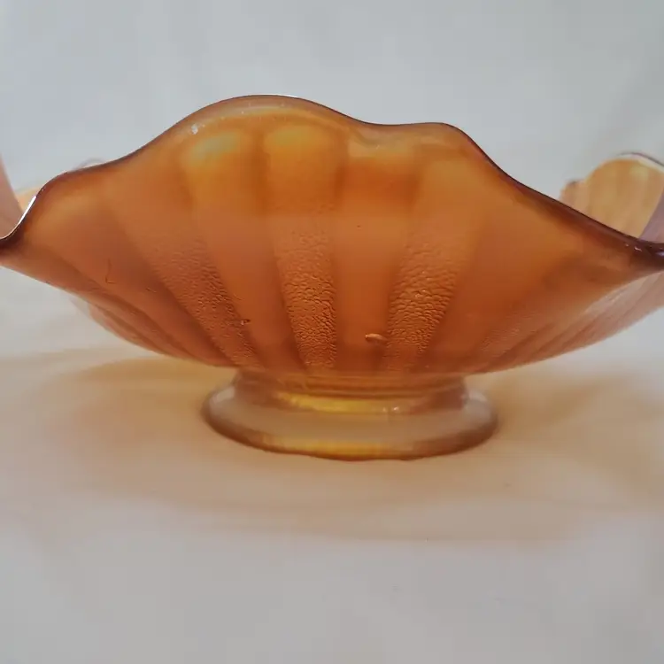Brand: Unmarked Pattern: Vintage Type: Bowl Color: Orange Material: Glass Production Style: Carnival Glass