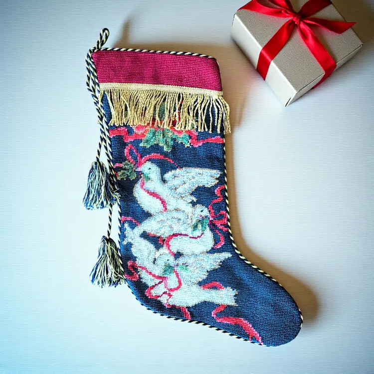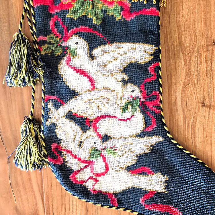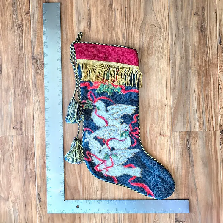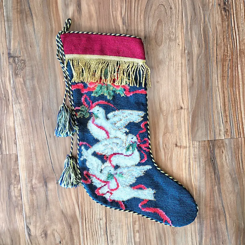 Imperial Elegance Needlepoint Christmas Stocking Doves Tassels Fringe 18" Vtg
