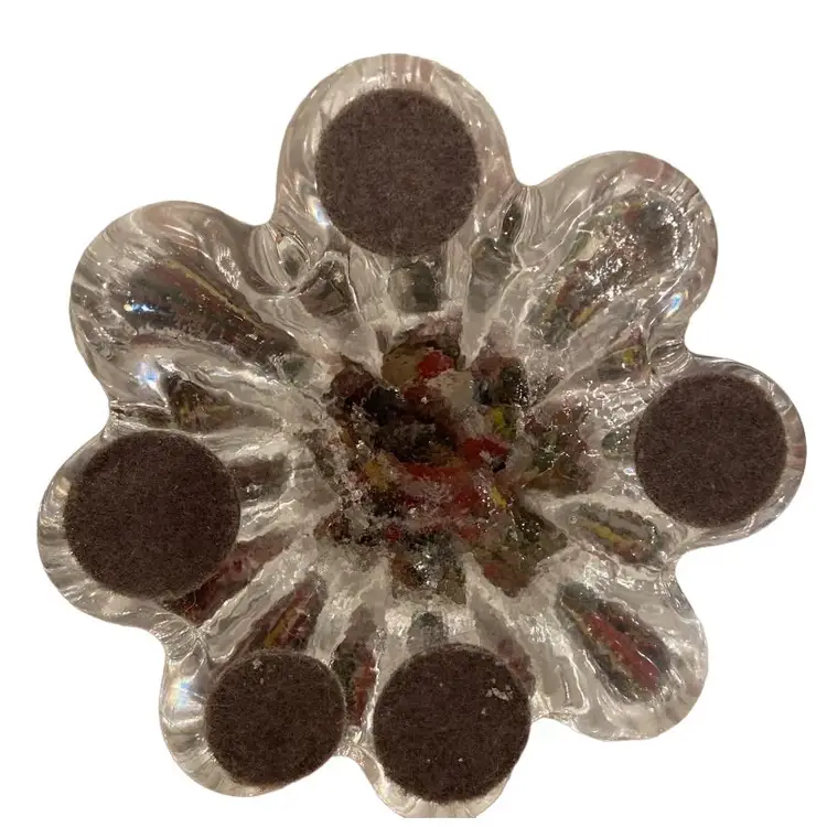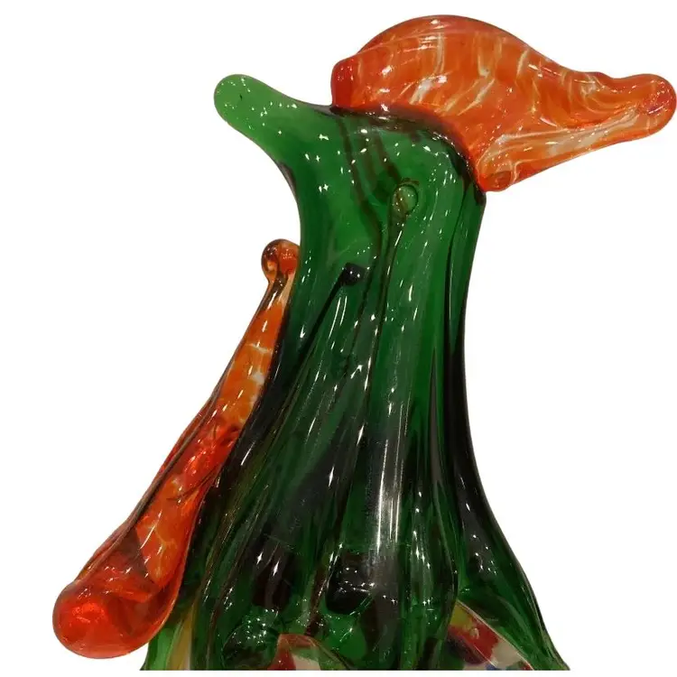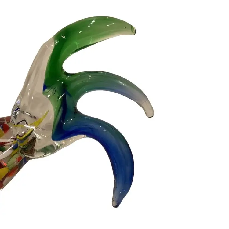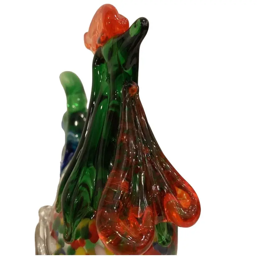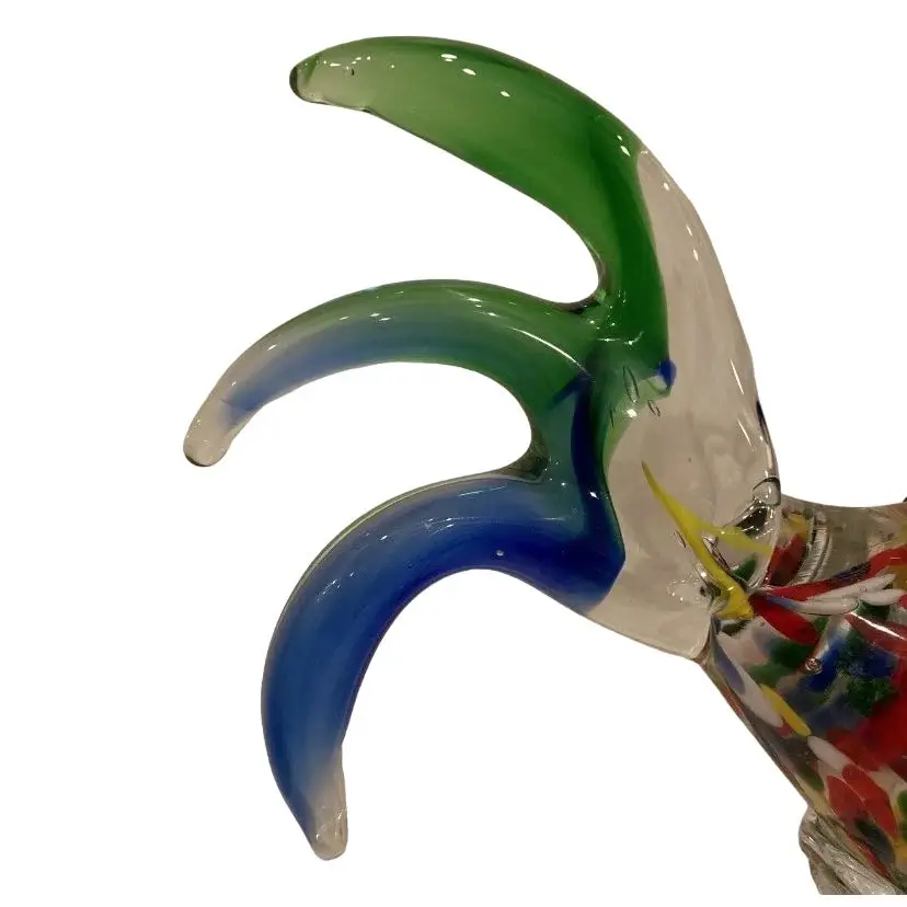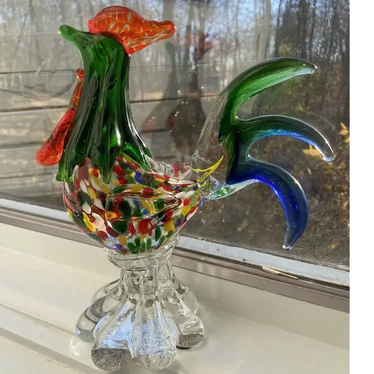 Add some color and life to your farmhouse décor with this beautiful glass rooster figurine with intricate details, this vintage original piece stands at 9 inches tall and weighs 3.5 The multicolor confetti design adds a playful touch to the animal theme, with a focus on the beautiful rooster subject. This import art glass animal is a one-of-a-kind piece, perfect for collectors and enthusiasts alike. Pre-owned, excellent condition with no chips. It has some felt pads on bottom. It is absolutely beautiful! The pictures don’t do it justice. 🐓