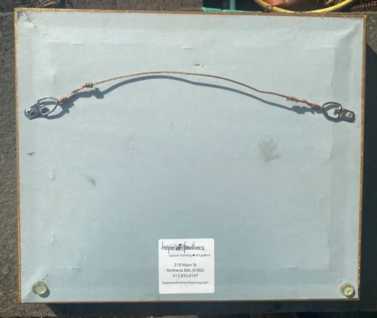 This impressionistic beach scene is so lovely. It is unsigned, as far as I can see. I did not take it out of the frame because it’s framed up so nicely. It is nice and clean with no damage. It looks like unvarnished acrylic on canvas. The colors are just beautiful. Frame is in very good condition. With the frame it measures 10.5” high and 12.5” wide, and sight is 7.5” by 9.5”. It is professionally framed and ready to hang.
