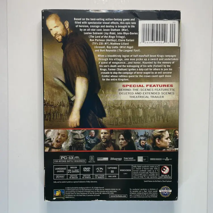 Immerse yourself in the fantasy action-adventure film, "In the Name of the King a Dungeon Siege Tale" on DVD. Released in 2007 by 20th Century Fox, this Rated PG-13, widescreen format is a must-see for unisex audiences.