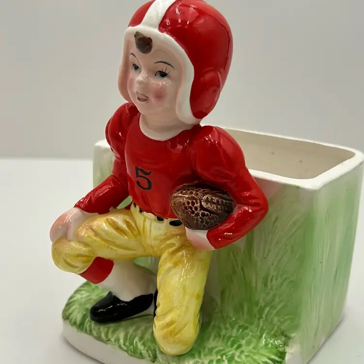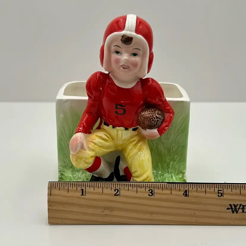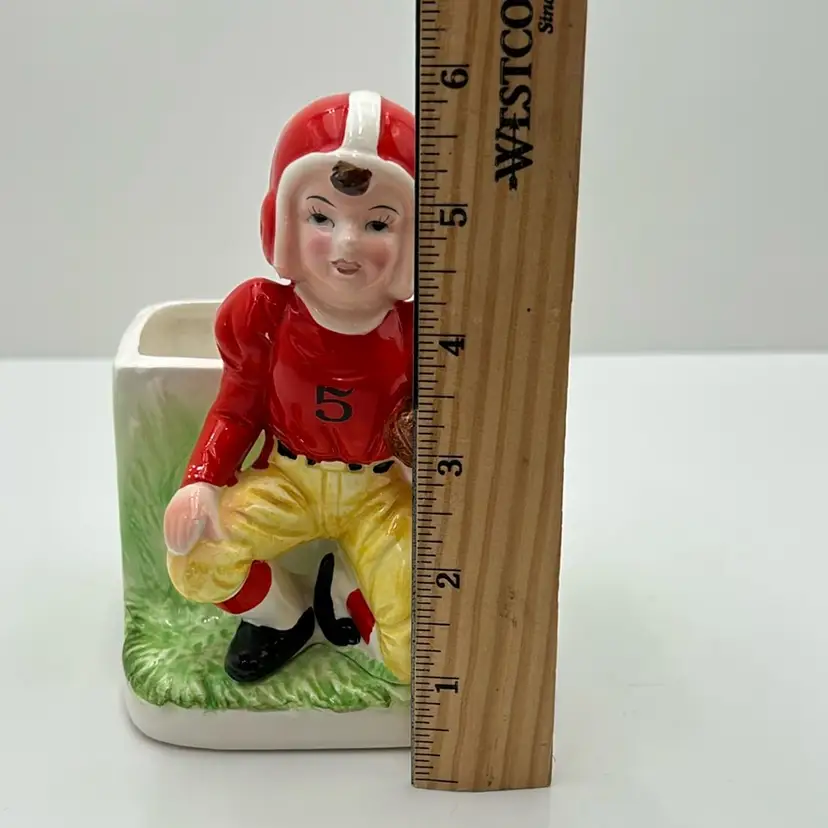 As shown 5.75 inches tall by 4 inches wide No chips but small crack in the back of the planter