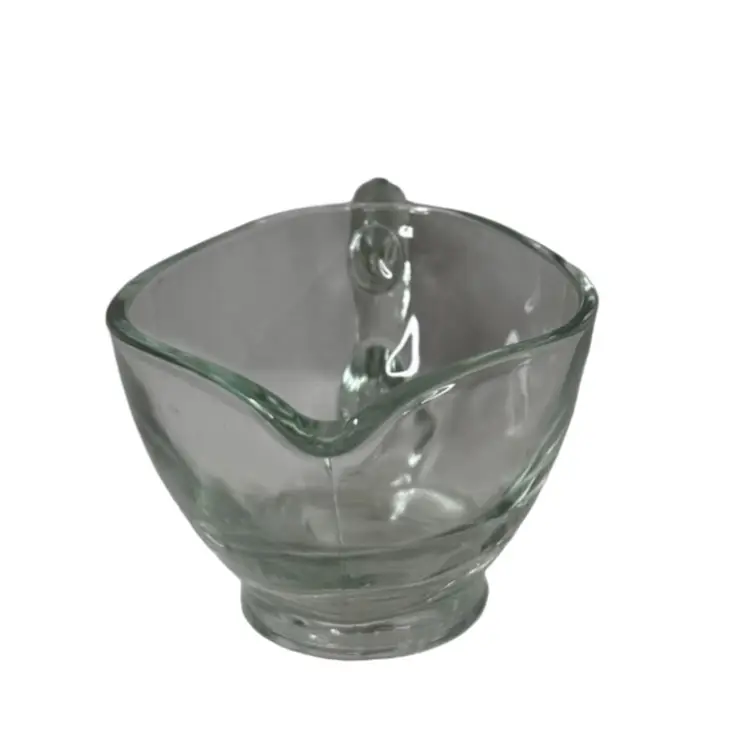 Indiana Clear Glass Gravy Boat with Scroll and Ball Handle 3” T x 4” W x 5-3/4” L