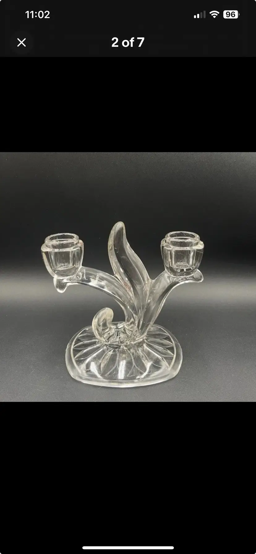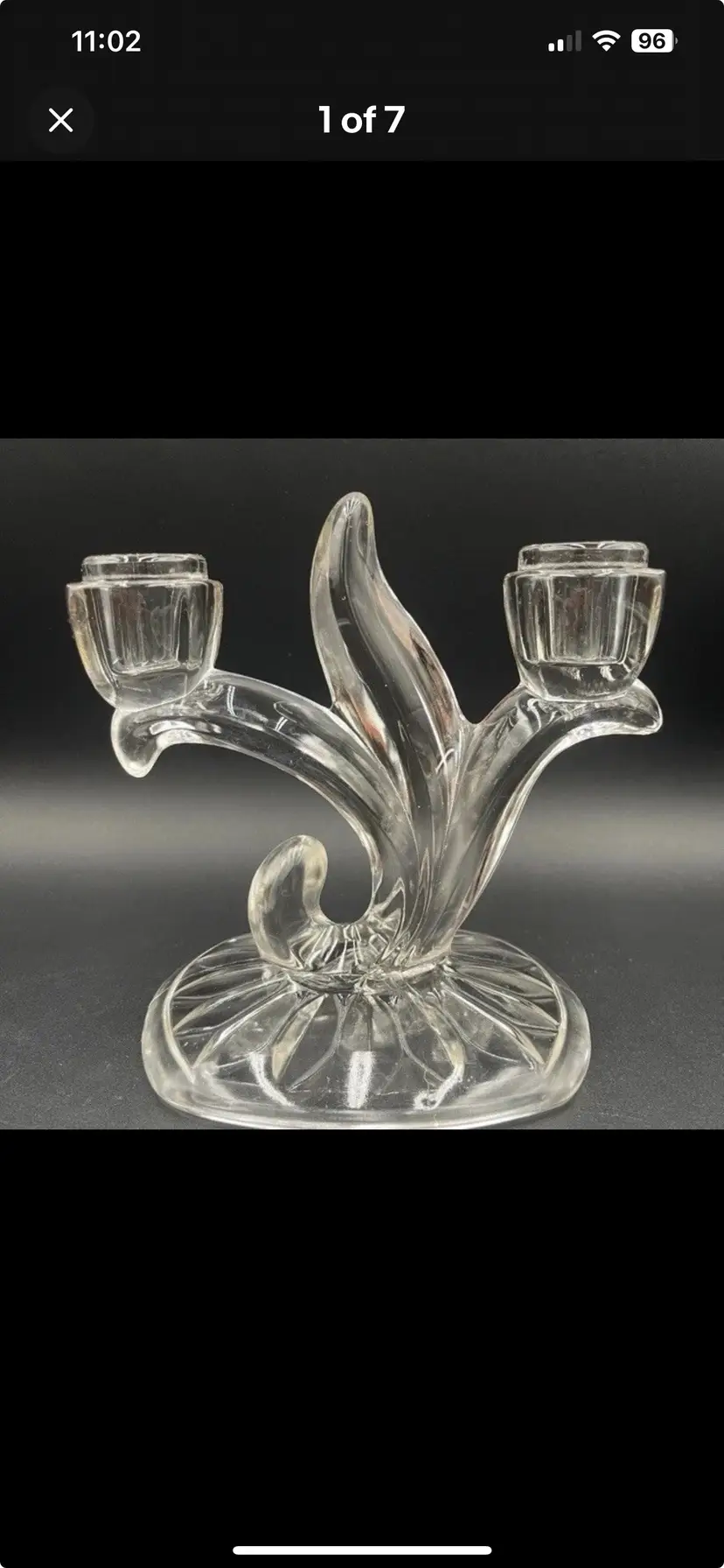 Indiana glass botanical double candle holder. This is a beautiful elegant piece that replaces having to have two candlesticks on the table or can be added to a collection of candlesticks to create a Warm, inviting, and dramatic table scape. No chips, no cracks no flea bites. Please view all photos as they also serve as the items description.