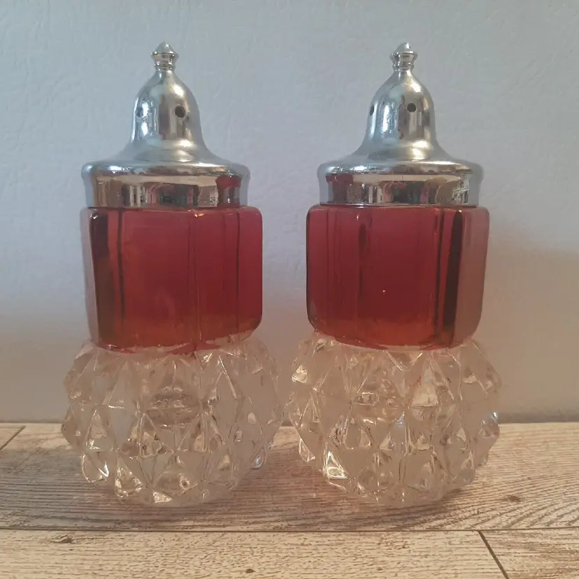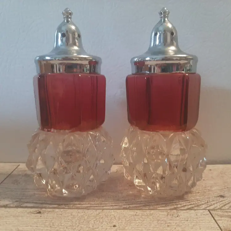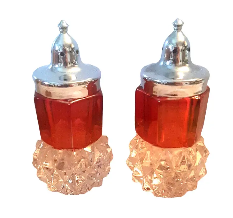 – Pattern: Diamond – Number of Items in Set: 2 – Occasion: All Occasions – Country/Region of Manufacture: Unknown – Material: Glass – Character: Flash – Brand: Unbranded – Style: Victorian – Color: Red – Set Includes: Pepper Shaker, Salt Shaker – Type: Salt & Pepper Shakers – Original/Reproduction: Original