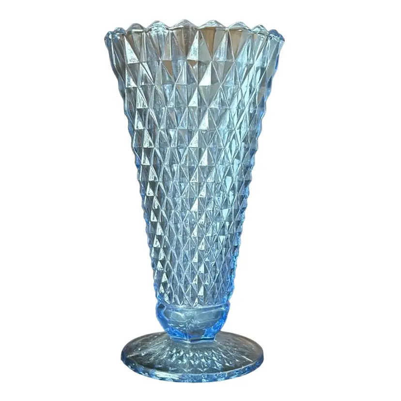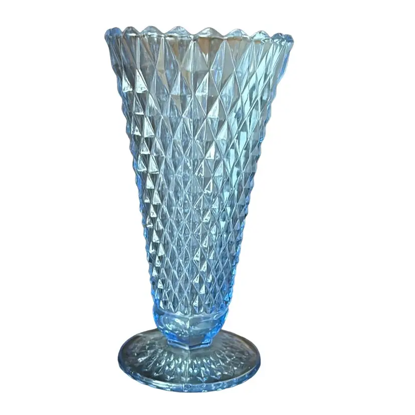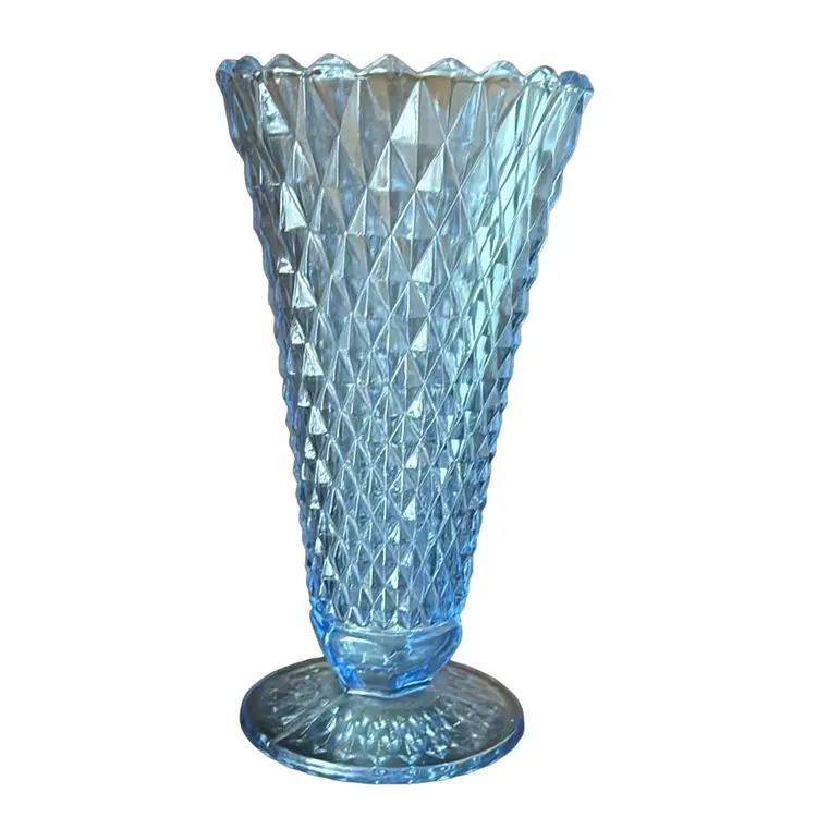 Design and Pattern: The vase features the classic Diamond Point pattern, characterized by its textured, geometric design that catches and reflects light beautifully. This pattern adds a unique visual and tactile appeal, making it a standout piece in any collection.