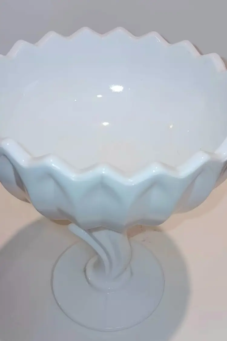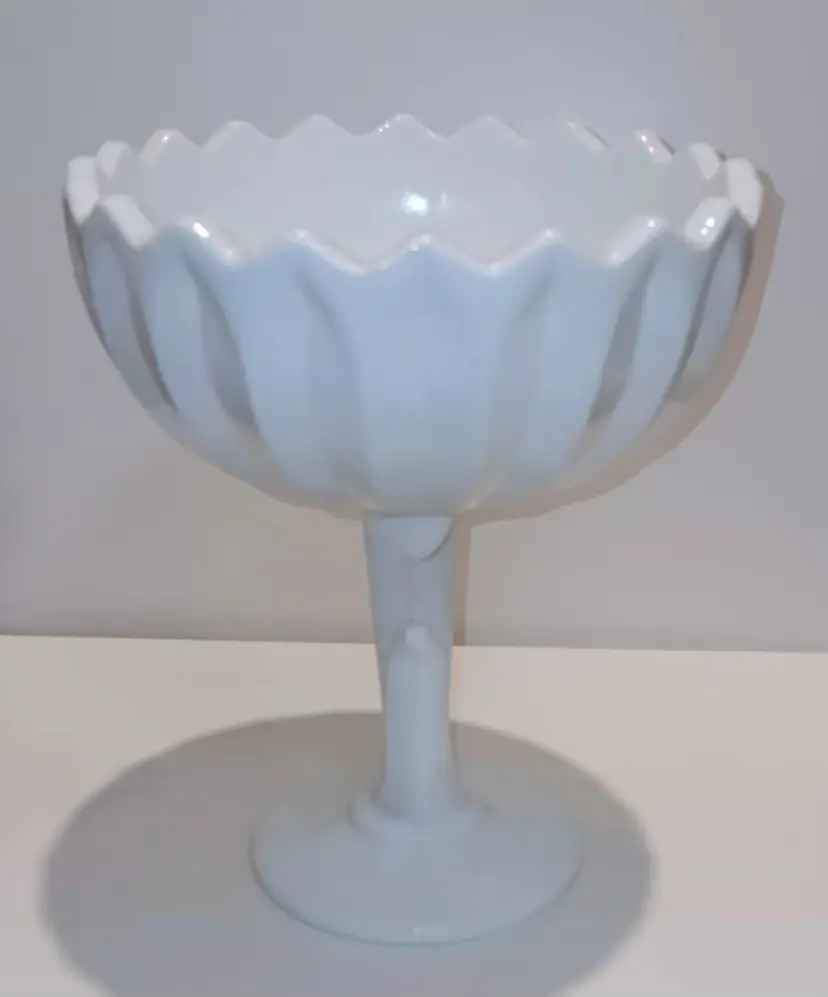 1960s Indiana Glass compote or candy dish. Measuring 8" tall and 6" wide. Excellent condition no chips or cracks.