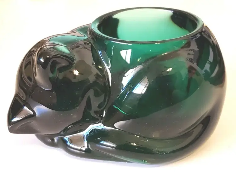 Pattern: Solid Occasion: All Occasions Color: Green Material: Glass Item Length: 4 in Modified Item: No Subject: Cat Brand: Indiana Art Glass Department: Adults Type: Candle Holder Style: Mid-Century Modernism Theme: Cats Country/Region of Manufacture: United States Handmade: No 666