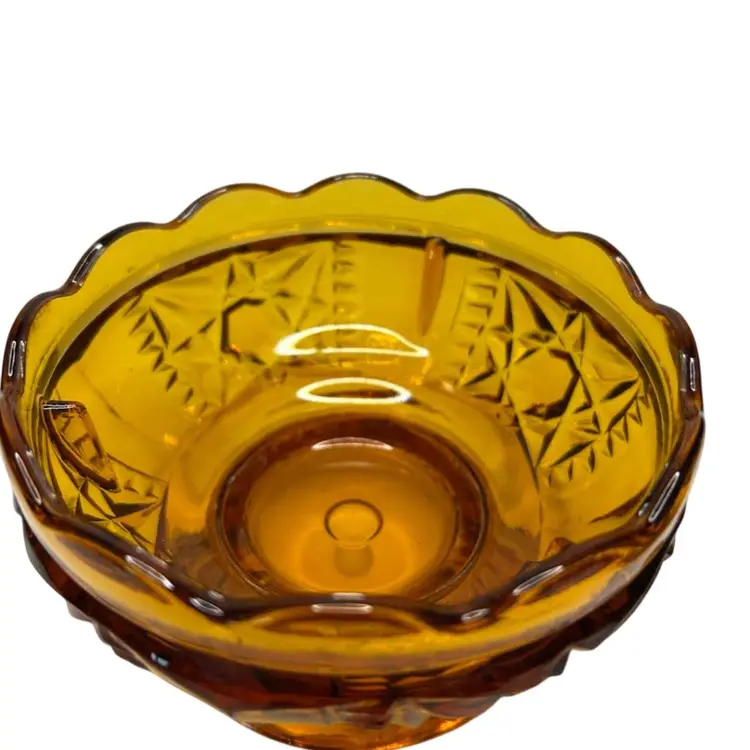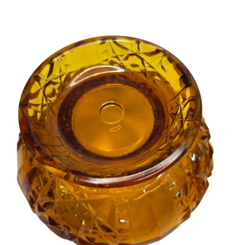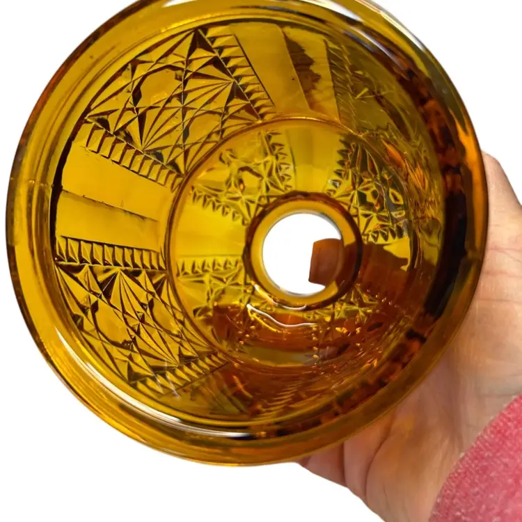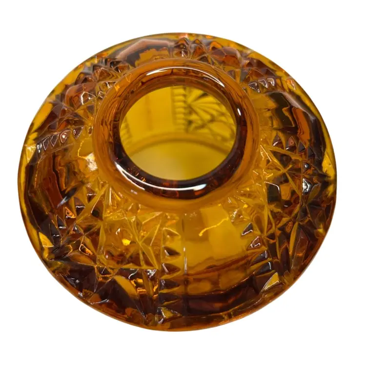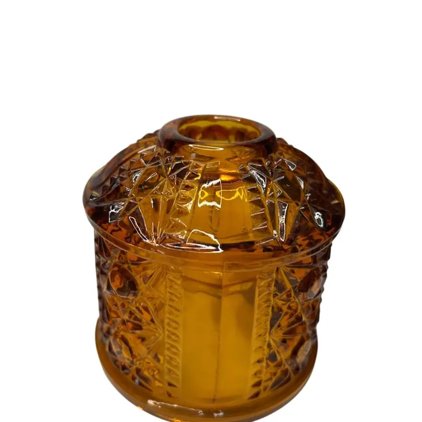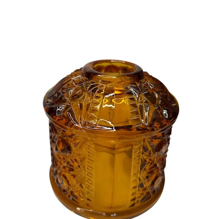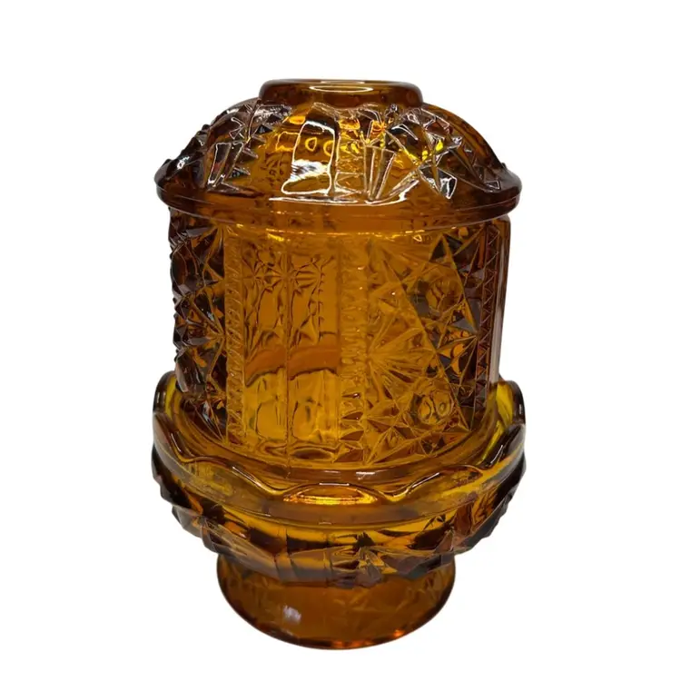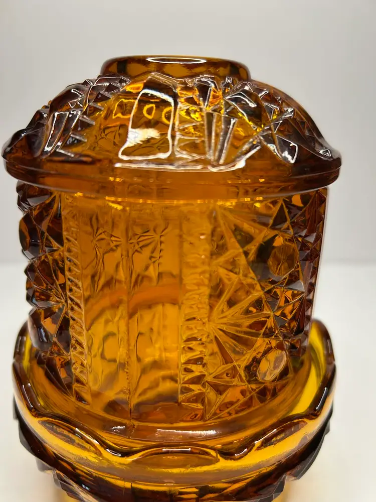Indiana Glass “ Stars And Bars” Pattern 6 1/2” Tall Amber Color Fairy Lamp