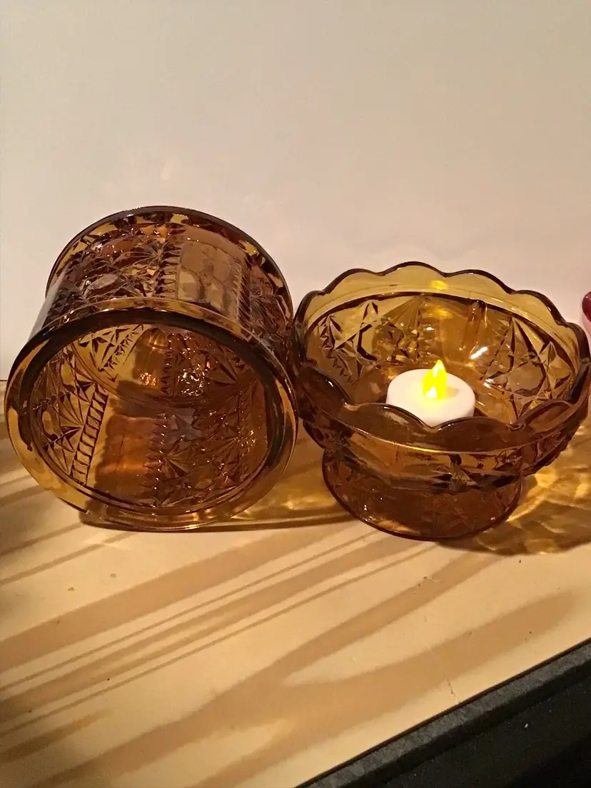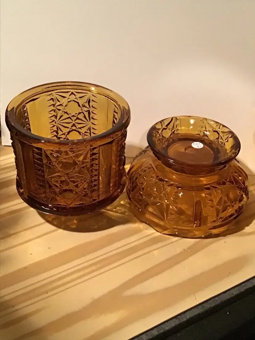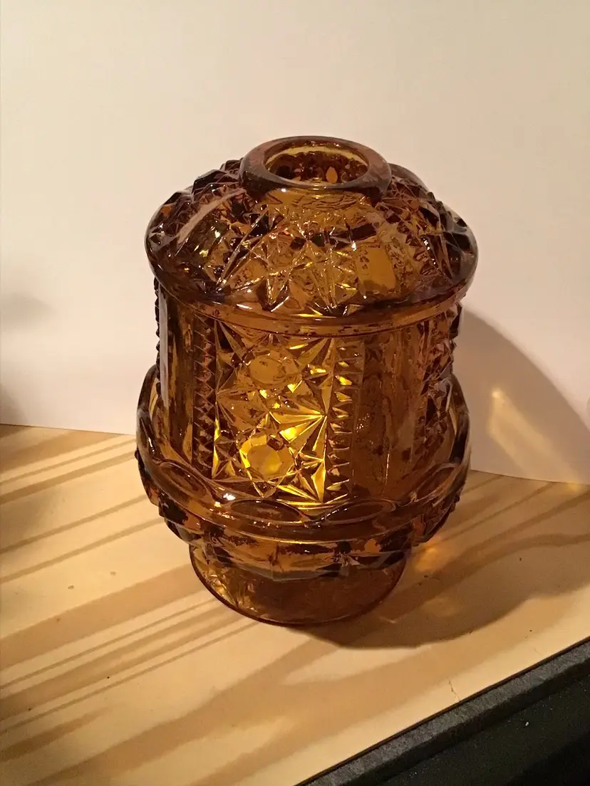 no chips or cracks or flea bites. Beautiful Amber color. 6.75” tall x 5” wide