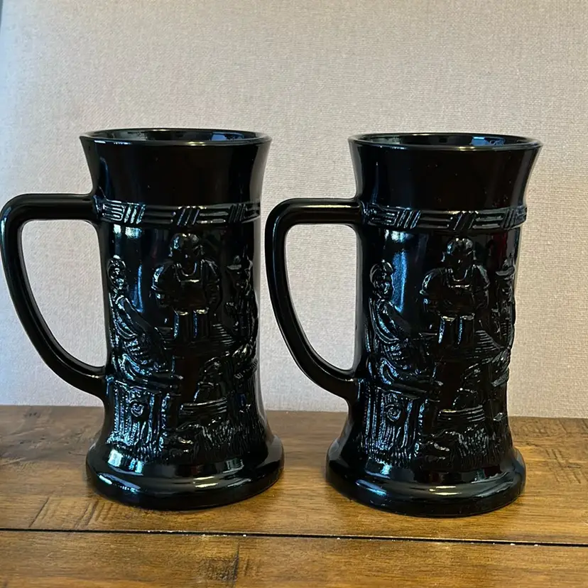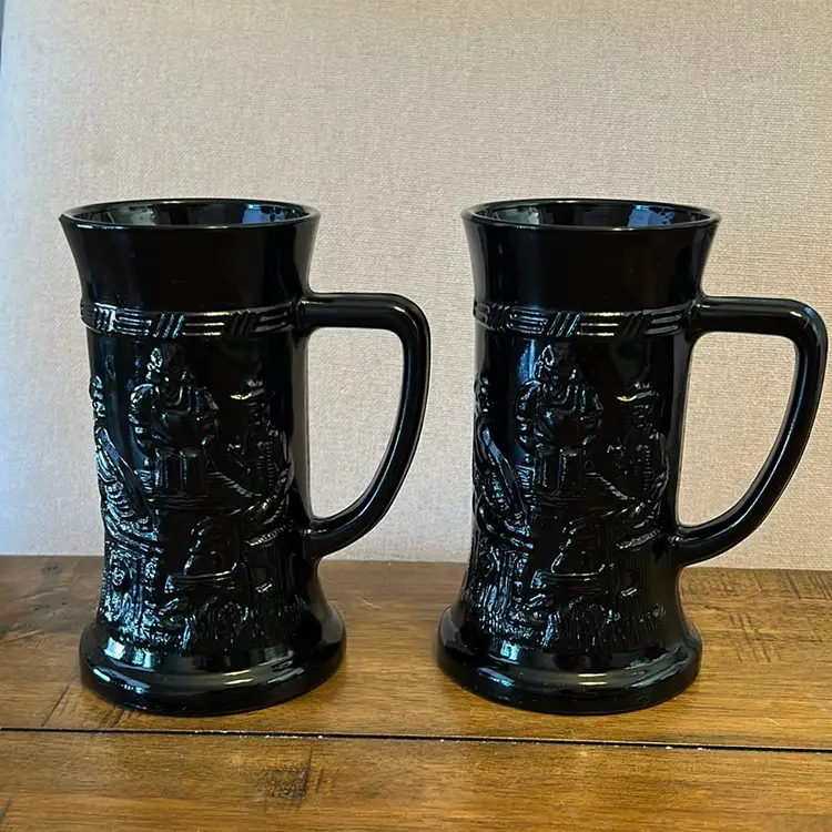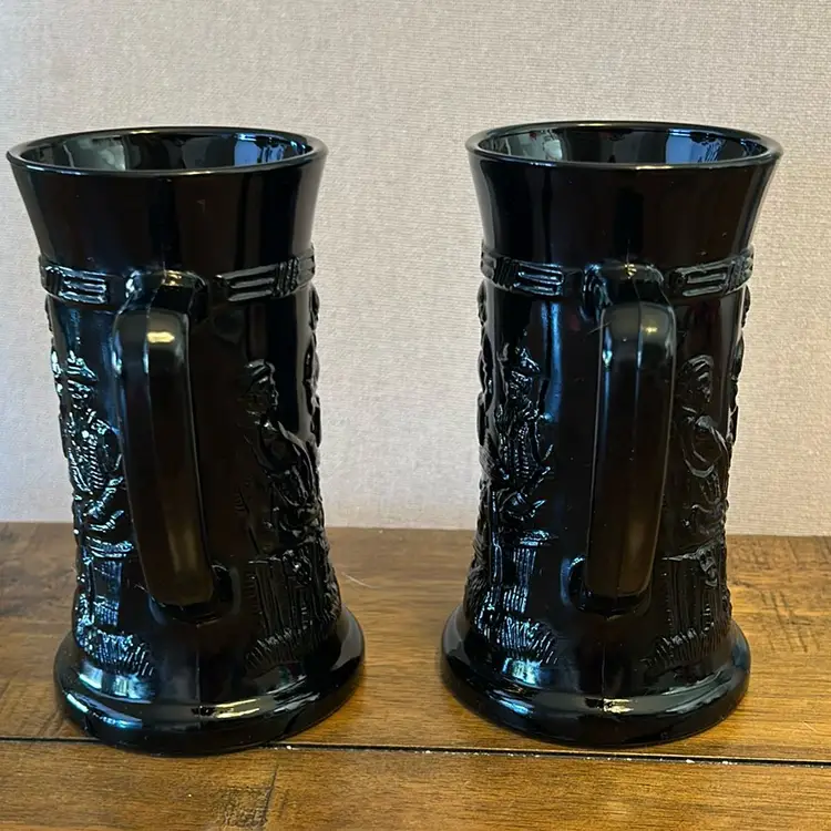 These are 2 Indiana Glass 6”Tiara Black Beer Steins. They are in great condition!